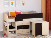 Кровать-чердак Астра 9 (вариант 7) станет настоящей находкой для заботливых родителей. Комплект мебели компактный и функциональный, ведь он имеет все необходимое для ребенка: просторное и комфортное спальное место, лестницу для безопасного подъема и спуска, три вместительных выдвижных ящика для хранения детской одежды, выкатной стол с тумбой для размещения школьных принадлежностей. Купив ребёнку кровать-чердак Астра 9 (вариант 7) вы подарите ребенку яркое детство и расширите пространство в комнате для игр.