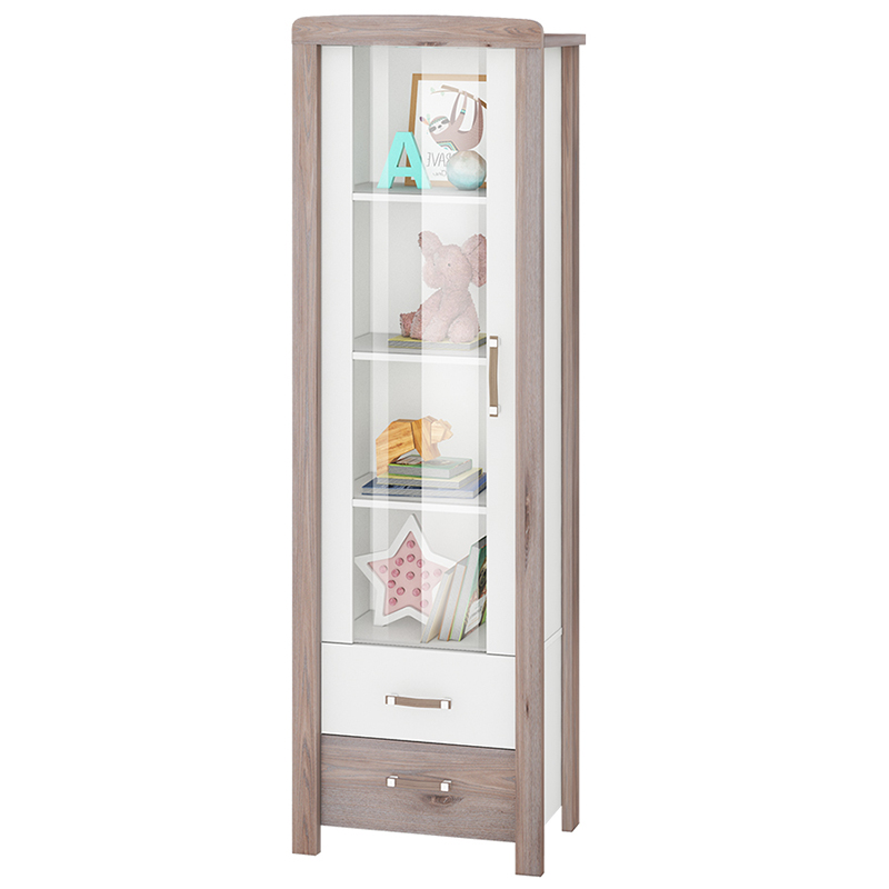 Шкаф-витрина Bartolo ВТД-СФ предоставит достаточно места для размещения и бережного хранения одежды и белья, книг, игрушек, канцелярских и школьных принадлежностей, разнообразных сувениров, призов и других предметов, дорогих и важных ребенку. Модель включает три полки вверху и два выдвижных ящика в нижней части корпуса. Такой шкаф прекрасно впишется в любой интерьер комнаты, а также позволит ребенку расположить красивые и любимые вещи на видном месте.