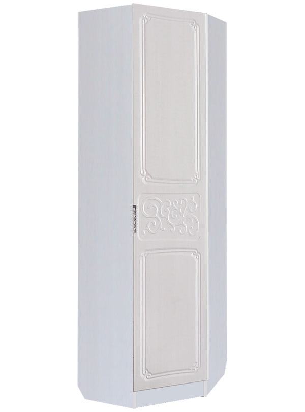Шкаф угловой Тиффани станет гармоничным и достаточно функциональным дополнением интерьера уютной комнаты. За распашной дверью находится широкая штанга для вешалок-плечиков со различными костюмами, верхней одеждой, красивыми платьями и другой безупречно выглаженной одеждой. Пять полок и нижнее пространство в шкафу пригодятся для размещения белья, различных аксессуаров и коробок с обувью.
