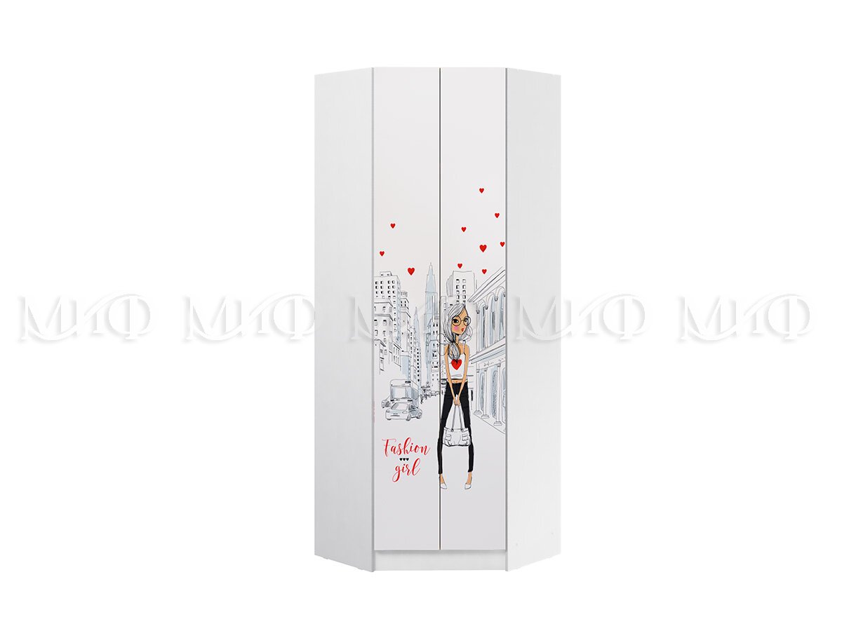 Шкаф угловой Вега Girl стильное и практичное решение для обустройства пространства в детской комнате. Фасады выполнены с ярким девчачьим рисунком, просто мечта для юной леди. -