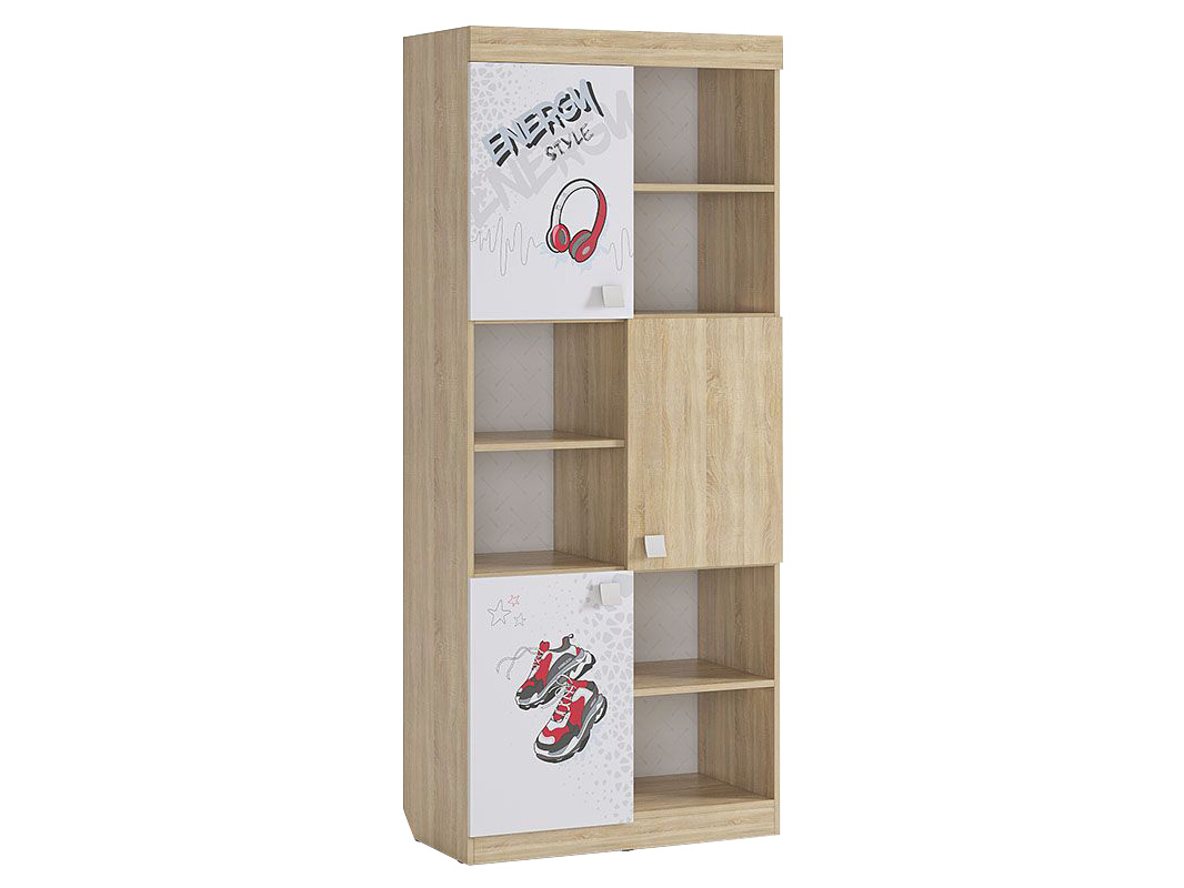Стеллаж Энерджи станет отличным дополнением общего интерьера комнаты, а также поможет создать уютную атмосферу. Большое количество открытых полок пригодятся для размещения интересных книг, ярких фотографий, сувениров и оригинальных статуэток, а также других предметов, которые хотелось бы видеть постоянно. Отделения с глухими дверками можно использовать для хранения сложенной одежды и других вещей.