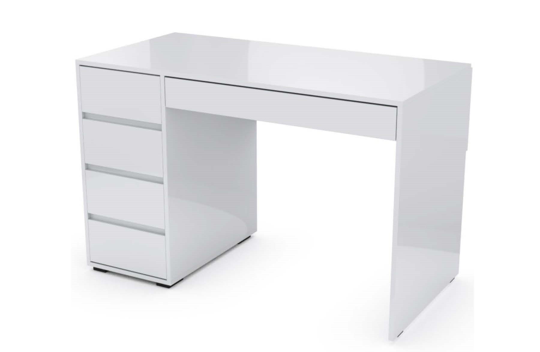 Стол компьютерный №13 белый глянцевый прямой. Предназначен для работы, письма, компьютера. Стол оснащен одним большим и четырьмя небольшими ящиками с телескопическими направляющими полного выдвижения. Опоры регулируеиые. -