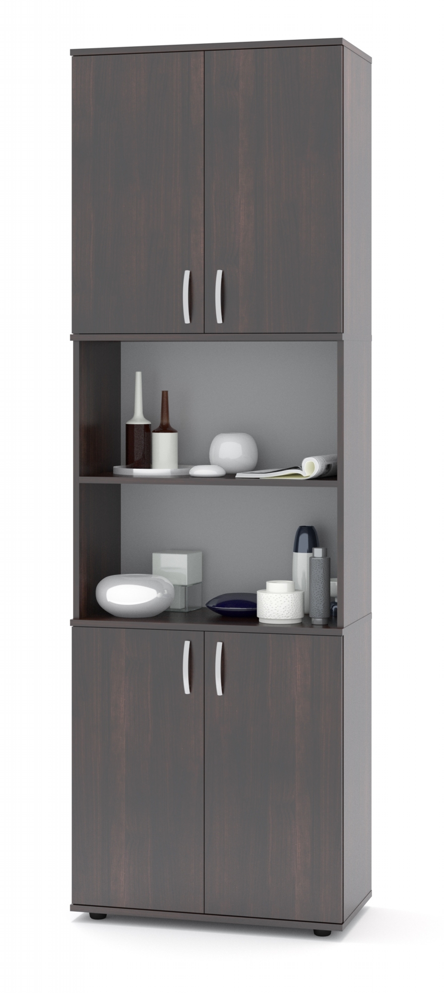 Стеллаж высотой 2180 мм. Нижняя и верхняя полка являются съемными. Изделие оснащено пластиковыми ножками, предотвращающими размокание ДСП вследствие влажной уборки напольного покрытия. Корпус и полки стеллажа изготовлены из качественного ламинированного ДСП толщиной 16 мм, самого популярного материала для производства корпусной мебели, обеспечивающего необходимую прочность и долговечность деталей. Дверцы стеллажа предотвратят попадание пыли и солнечного света внутрь закрытого пространства.
