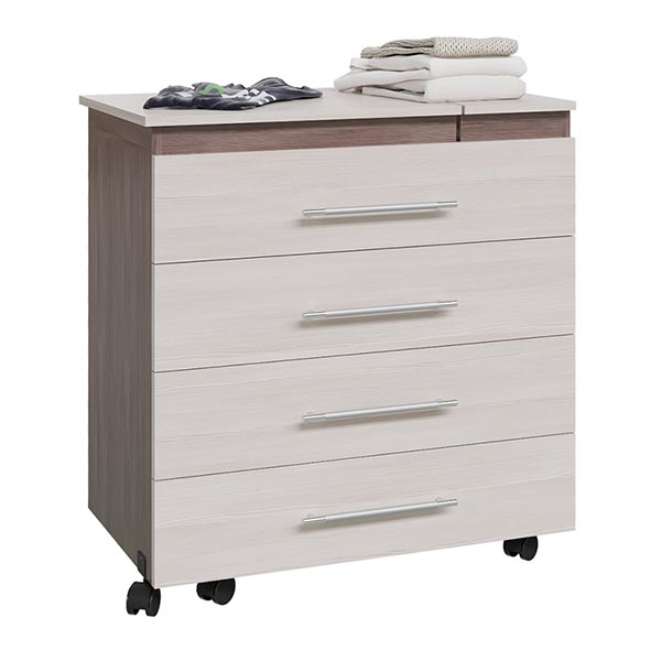 Комод с гладильной доской является весьма практичным изделием, которое пригодится в любом доме. Вам больше не понадобится громоздкая и тяжелая гладильная доска, которую невозможно спрятать. Этот комод уже оснащен таким приспособлением для удобной глажки одежды и белья. Четыре вместительных выдвижных ящика созданы для хранения идеально выглаженной одежды и белья.