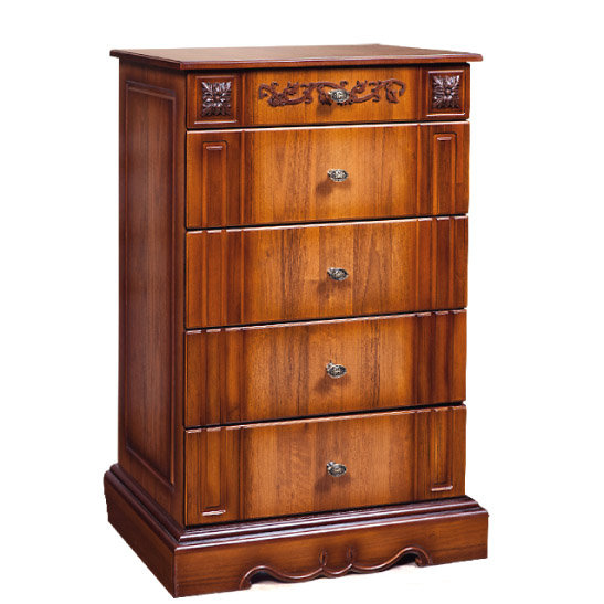 Комод Амелия имеет пять выдвижных ящиков для разнообразных вещей - одежда и белье, книги и журналы, сувениры и посуда. Такой комод станет незаменимым элементом в вашей комнате.