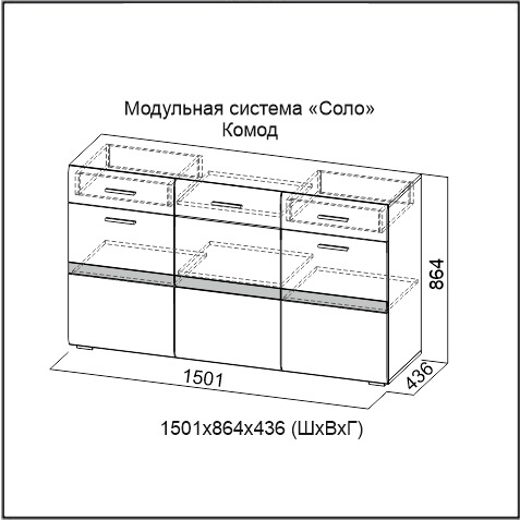 Размеры: Ш1501 х Г436 х В864 мм.