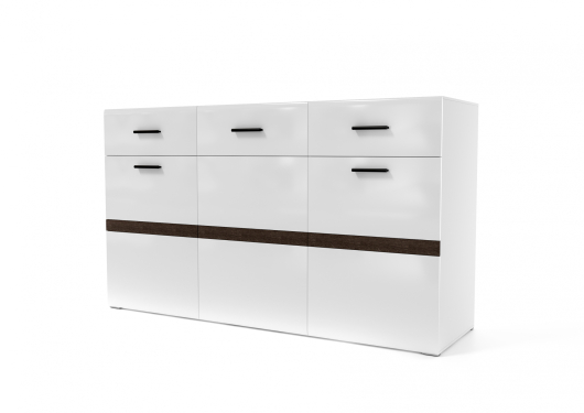 Комод Соло станет гармоничным дополнением интерьера любой комнаты. Полки, скрытые за дверцами, и два вместительных выдвижных ящика пригодятся для хранения одежды, постельного и нижнего белья, полотенец, разнообразных аксессуаров, украшений и косметики. Сверху на комоде и на открытых полках вы сможете разместить семейные фотографии, вазу или вазон с цветами, сувениры, статуэтки и другие оригинальные предметы декора. -