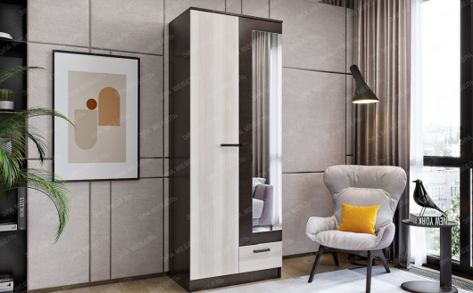 Вместительный шкаф с полкой ,штангой и ящичками, выполнен в популярных цветах ,позволит с удобством разместить предметы вашего гардероба.Шкаф Адель — компактное решение для зонирования пространства. Подойдёт не только для хранения одежды, но и как элемент интерьера в прихожей или маленькой спальне. Зеркальная фасада — не просто украшение: удобно проверять образ перед выходом, а отражённый свет визуально расширяет помещение. Глубина 470 мм — достаточно для вешалок с пальто, но не займёт много места у стены. Полки и ящики легко адаптировать под сезонные вещи: сверху — свитера, внизу — обувь или аксессуары. ЛДСП устойчива к царапинам, не боится перепадов температуры — идеальна для квартир с центральным отоплением. Устанавливается за пару часов без сверления — крепится к полу и стене стандартными анкерами.
