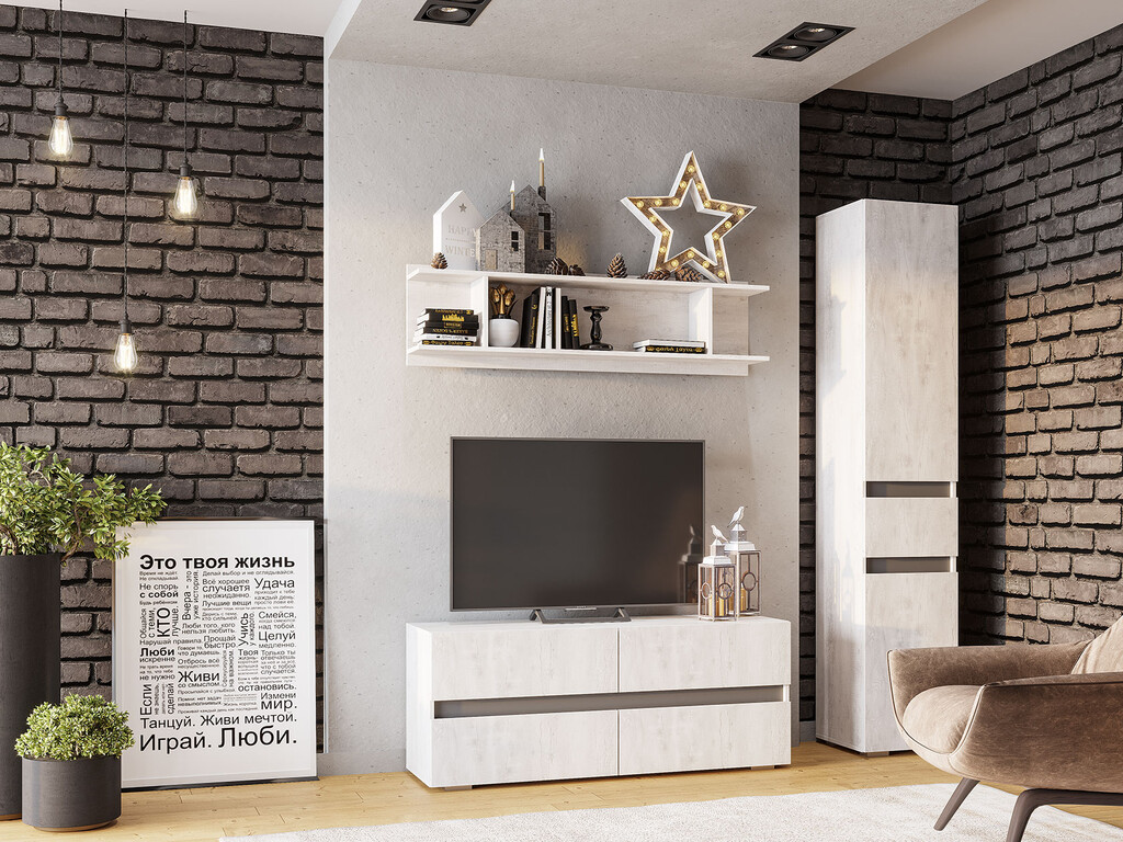 Гостиная Мрия стильное и лаконичное сочетание светлого цвета с серым акцентом. Мебель Мрия впишется в любой интерьер и добавит ему функциональности. -