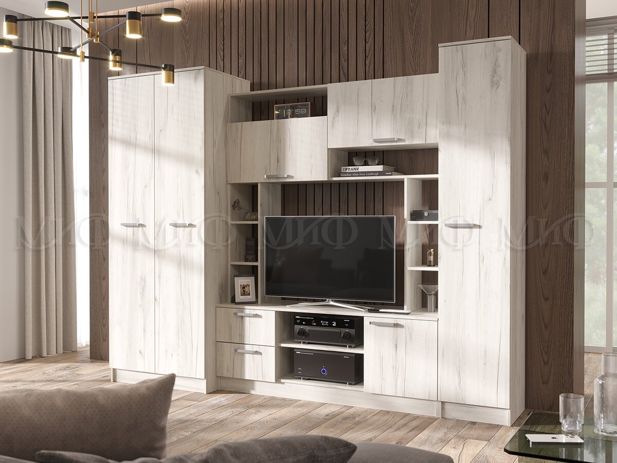 Стенка Флора станет достойным украшением вашей гостиной. Практичное наполнение позволит максимально использовать пространство гостиной Флора. -