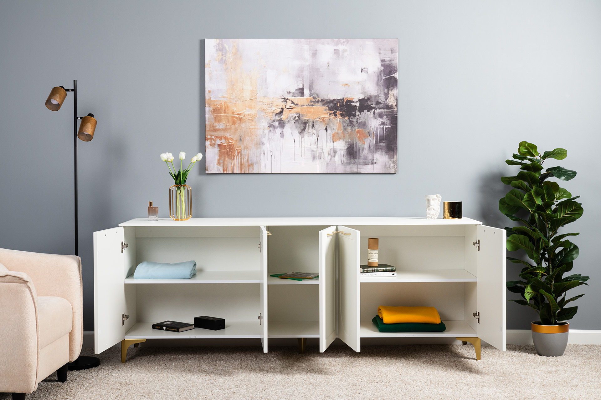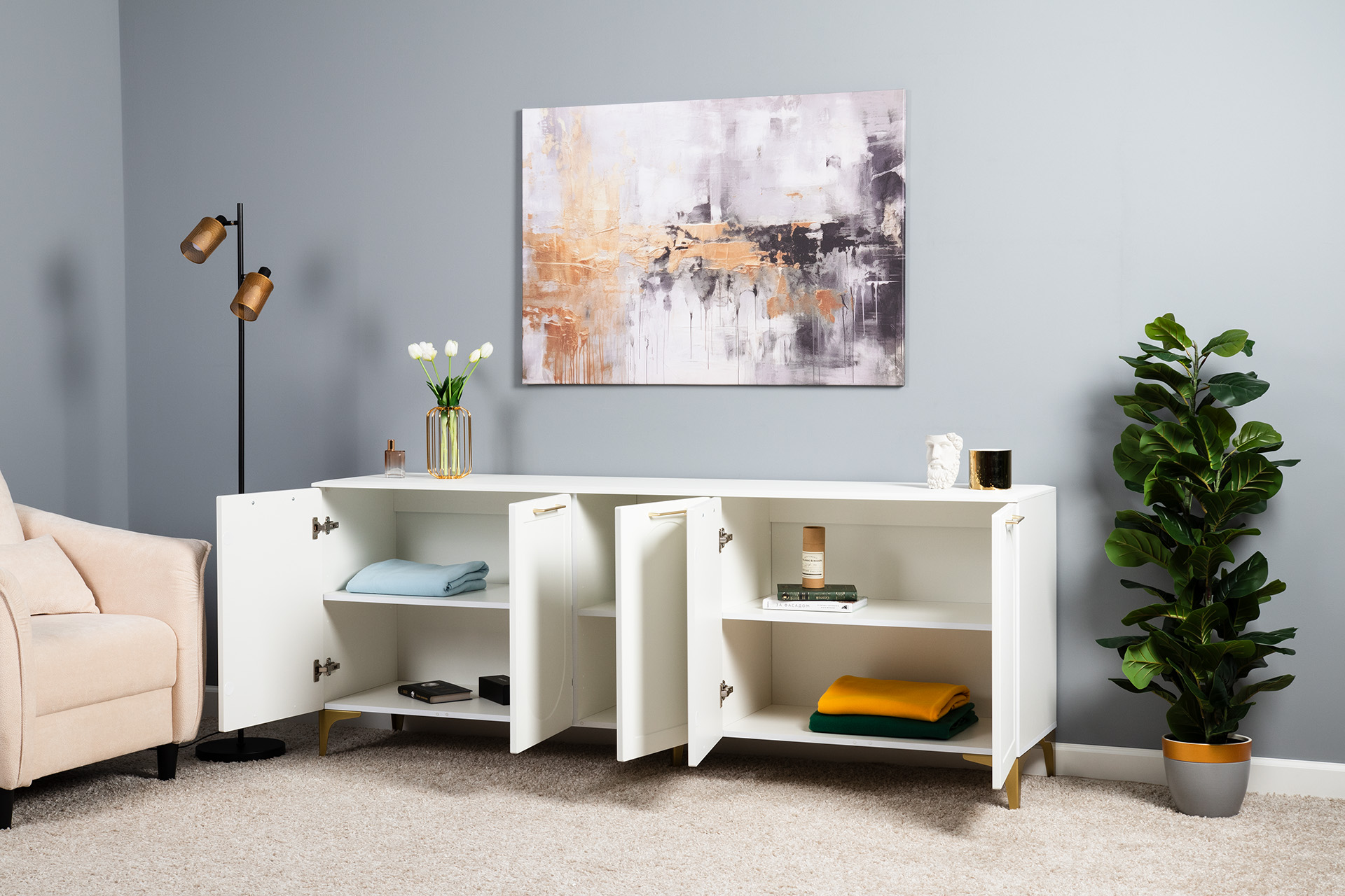 Тумба под ТВ 16.66 Монтесито - это сочетание элегантности, функциональности и утончённого декора. Фасады с фрезеровкой и верхняя крышка из МДФ делают эту модель очень привлекательной. -
