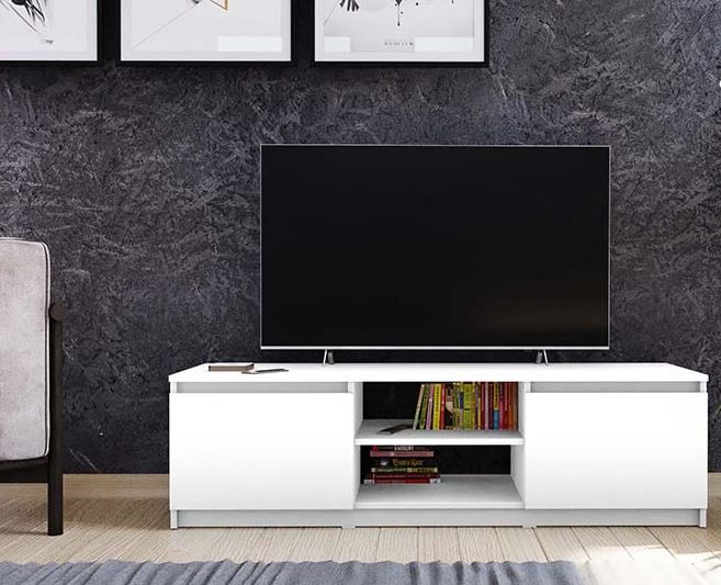 Тумба под ТВ Модерн - визуально легкая и светлая модель для современных интерьеров в стиле минимализм. Тумба станет отличным решением для гостиной или спальни, не только эффектно дополнив ТВ, но и разместив множество мелочей. Модель оборудована вместительной нишей и двумя распашными отделениями.Тумба идеально вписывается в узкий коридор или угла гостиной — глубина всего 445 мм позволяет оставить пространство для прохода. Благодаря гладким фасадам и отсутствию острых углов, модель безопасна в доме с детьми. Петли с доводчиком работают бесшумно, так что открытие/закрытие ящиков не потревожит сон или просмотр фильма. В нише удобно разместить колонки, зарядки или пульта — всё под рукой, но не на виду. Подходит для ТВ до 65 дюймов: задняя стенка ровная, кабельные отверстия внизу позволяют аккуратно спрятать провода. Легко собирается — инструкции в комплекте, крепеж включён.