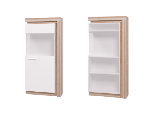 Шкаф-витрина 01 Люмен станет гармоничным и функциональным дополнением общего интерьера уютной гостиной. Модель предоставит достаточно места для аккуратного размещения роскошных наборов посуды, хрустальных бокалов, редких книг, коллекции интересных изделий, дорогих напитков и другие вещи, которые приносят эстетическое удовольствие. На полках, скрытых за глухой частью двери, вы сможете хранить разнообразных предметов.