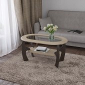 Стол журнальный Маджеста-2 - красивый овальный журнальный столик смотрится особенно стильно из-за модного сочетания материалов, цветов и неординарной формы ножек. Овальная столешница установлена на фигурные ножки, на которых закреплена полочка. Столешница и полочка выполнены в цвете зебрано классик, а ножки - клён азия. Столешницу украшает вставка из тонированного закаленного стекла - и стильно, и красиво. Столешница изготовлена из МДФ, полочка и ножки стола из ламинированной ДСП.