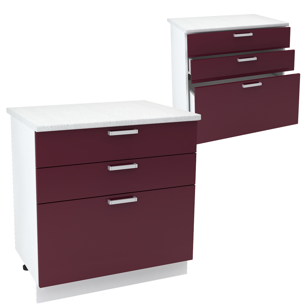 Напольный шкафчик для кухни Модена сделан из ЛДСП и МДФ. Он имеет два выдвижных ящика и станет отличным местом для хранения посуды, кастрюлей и других мелочей. -