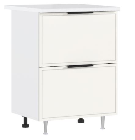 Компактный размер 60×60 см идеально вписывается в маленькие кухни или используется как дополнительная рабочая зона у окна. Два выдвижных ящика — удобно для хранения мелочей: посуды, специй, кухонных принадлежностей. Корпус в графитовом исполнении сочетается с фасадами в цветах «холст» — легко подбирается под общий стиль интерьера. Угловое расположение экономит пространство, а ровная поверхность позволяет ставить на стол миксер или чайник. Перед монтажом убедитесь, что рядом есть розетка — стол не предусматривает скрытого подключения, но отлично работает с внешними приборами. Подходит для повседневного использования: завтраки, перекусы, организация рабочего уголка.