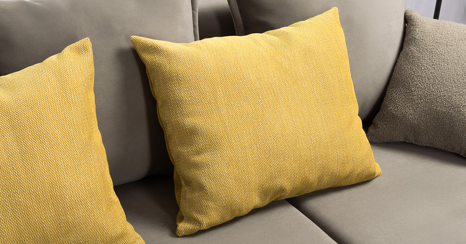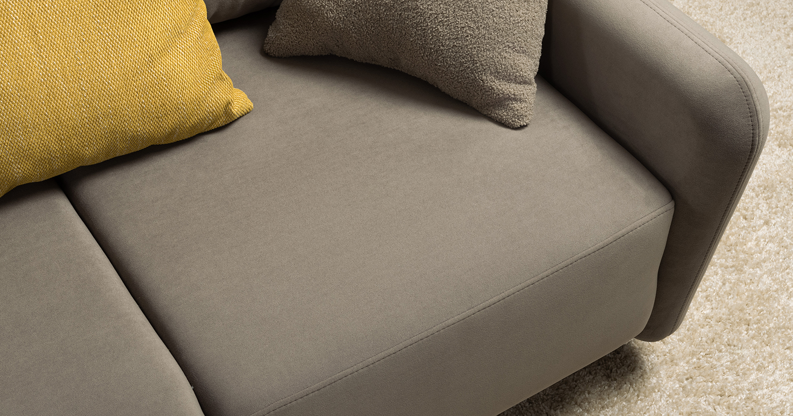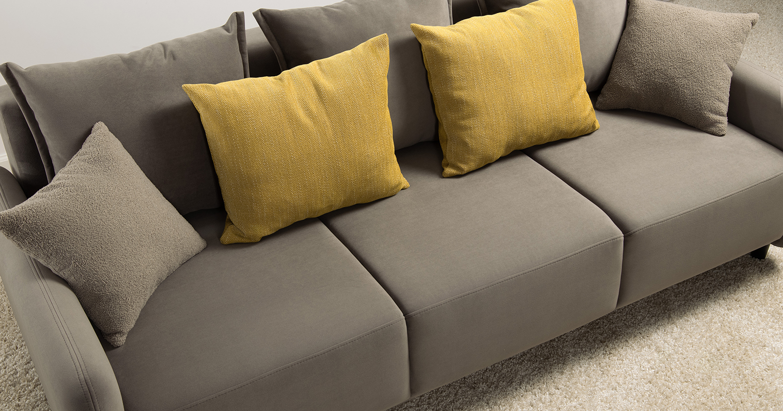 Декоративные отделочные строчки по боковинам и сиденью. В комплекте двусторонние приспинные подушки (5 шт.) и две декоративные думки в ткани букле