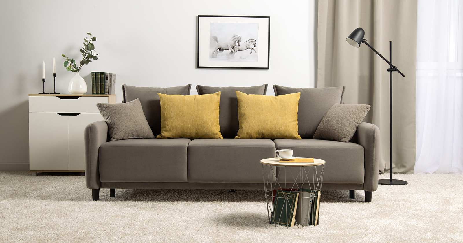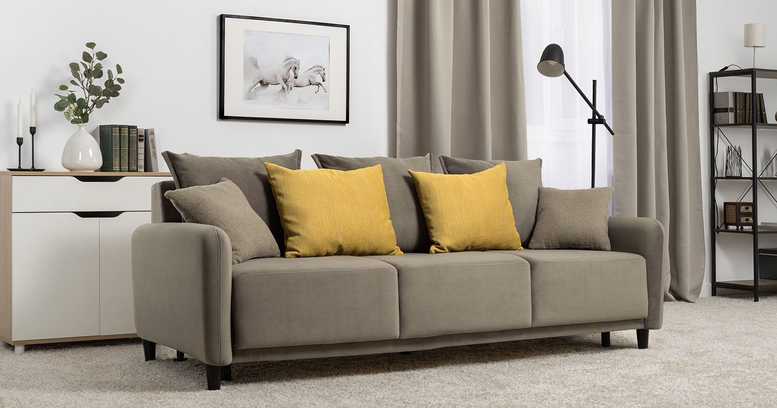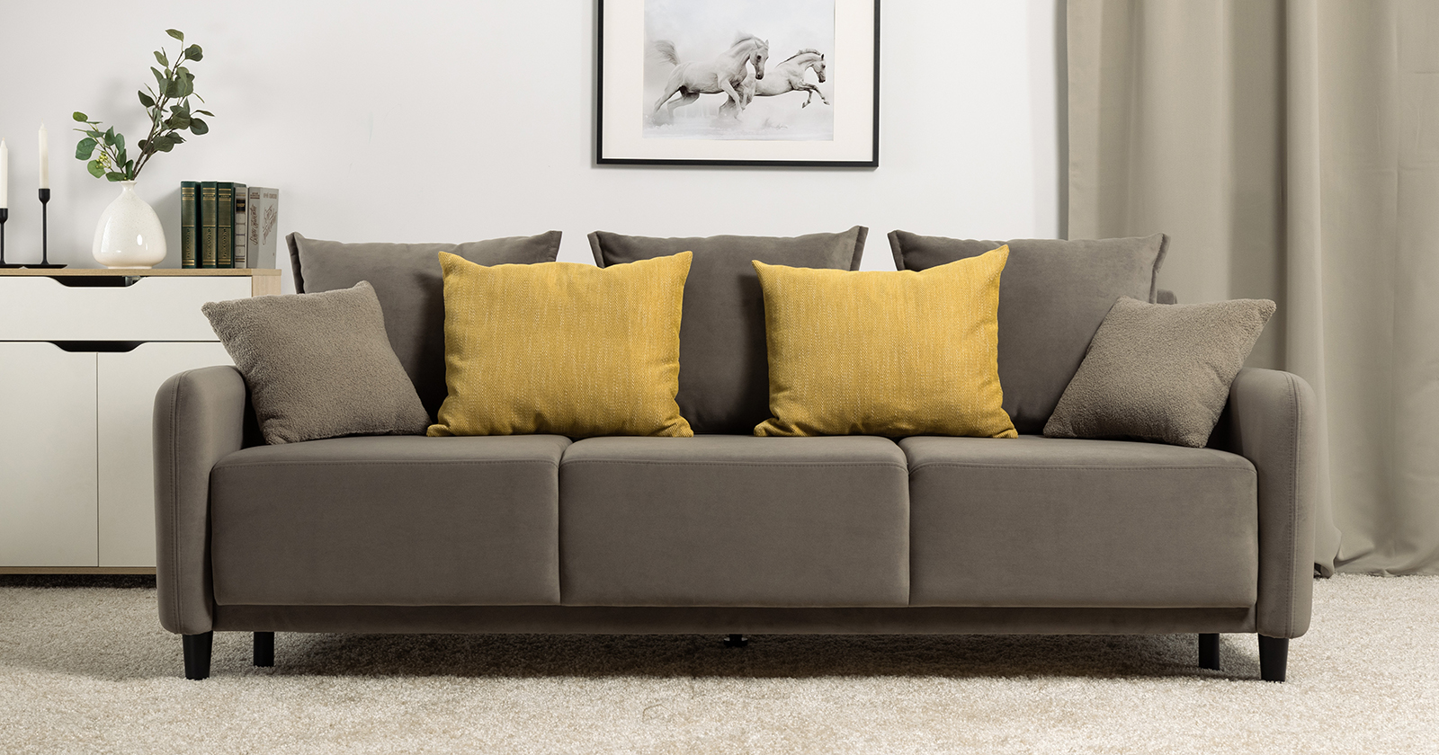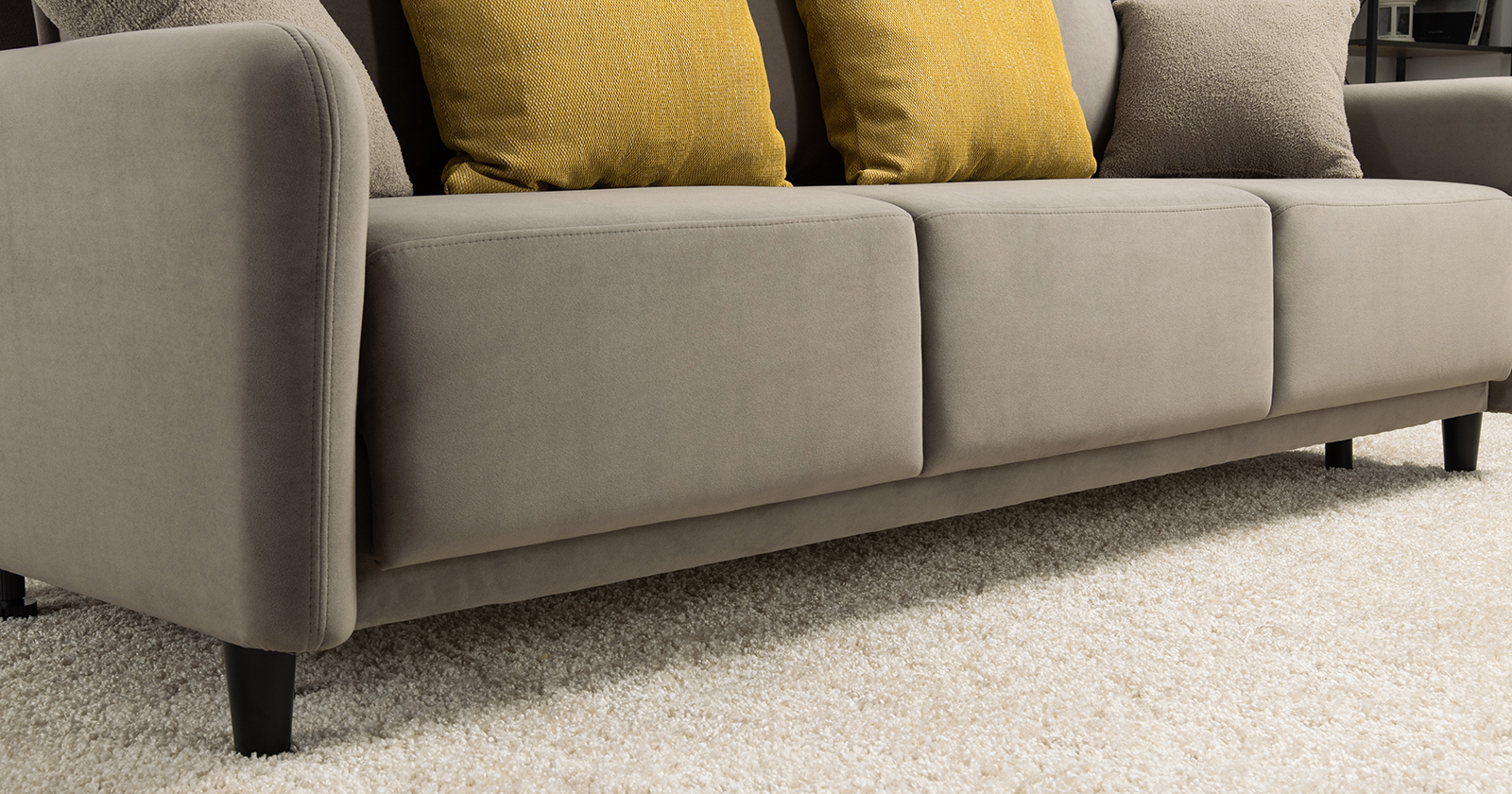 Декоративные отделочные строчки по боковинам и сиденью. В комплекте двусторонние приспинные подушки (5 шт.) и две декоративные думки в ткани букле