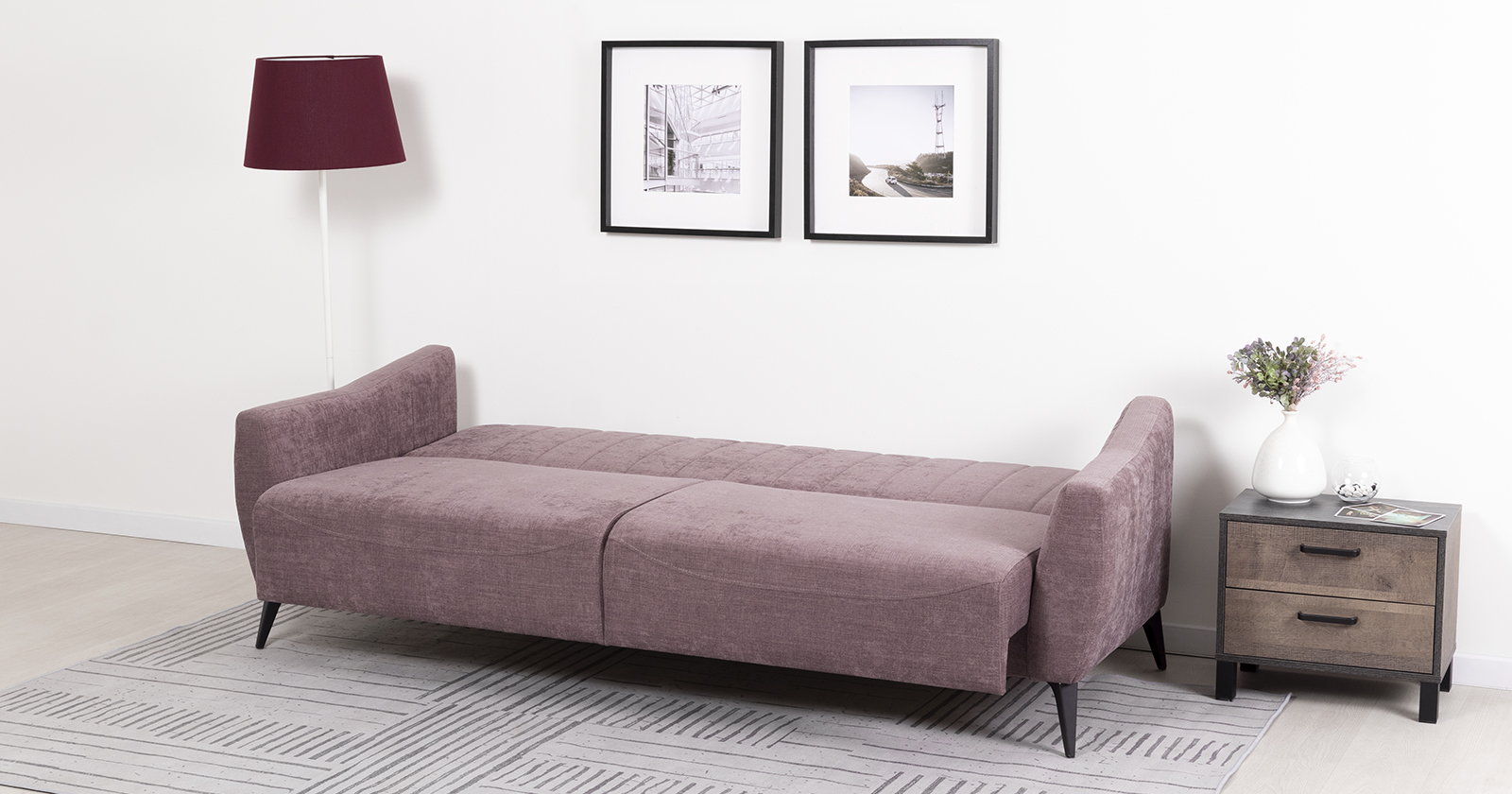 Диван-кровать Наоми – оптимальное решение для квартиры, дачи, офиса, дома и студии. Главное его преимущество - многофункциональность. Днем это зона отдыха где можно встретить гостей, посидеть перед телевизором, поиграть в с детьми, а ночью его легко превратить в место для сна. Посадочная и спальная зоны при раскладывании равны, что обеспечивает хороший сон. Механизм трансформации - книжка. Раскладной диван представляет больше возможностей для обустройства интерьера. Черные металлические ножки дивана высотой 160 мм позволят использовать его в интерьере лофт. Бордо (шенилл) ткань основы: Состав: полиэстер (PES) 100% Количество циклов истирания: более 50 000 Основные преимущества: высокая износостойкость легкая чистка дышащий материал ORIGAMI (микровелюр): Состав: полиэстер (PES) 100% Количество циклов истирания: более 72 000 Основные преимущества: Микс 8 трендовых цветовых оттенков Супермягкость и дополнительный объем за счет дублирования основы бондингом Circle Knitting Повышенная устойчивость к свету, влажному и сухому трению Габариты: сложенный: Ш2290 x Г920 x В880 мм разложенный: Ш2290 x Ш1130 x В690 мм спальное место: Д1920 x Ш1130 мм высота посадки (мм): 470 глубина сиденья (мм): 590 высота спинки (мм): 440 высота подлокотника от сиденья (мм): 220 максимально допустимая нагрузка: 80 кг на одно посадочное/спальное место, 160 кг на диван Механизм трансформации Книжка Бельевой ящик есть размер отделения: Ш740 x Г885 x В100 мм каркас:  фанера деревянный брус ДСП ДВП основание сиденья: ППУ на блоке плоских пружин "змейка" приспинные подушки, шт: 2 декоративные подушки, шт: 2 наполнитель подушек: крошка ППУ и полиэфирное волокно «шарики»  материал опор: металл цвет опор: черный высота опор (мм): 165 Декор Стежка спинки 13 швов. Торец по верхней и боковым граням спинки пошит одинарным декоративным швом. Спинка радиусная. Сиденье скругленное, средней мягкости. Упаковка количество коробок, шт: 1 общий вес с упаковкой, кг: 66,5 Гарантия: 18 месяцев