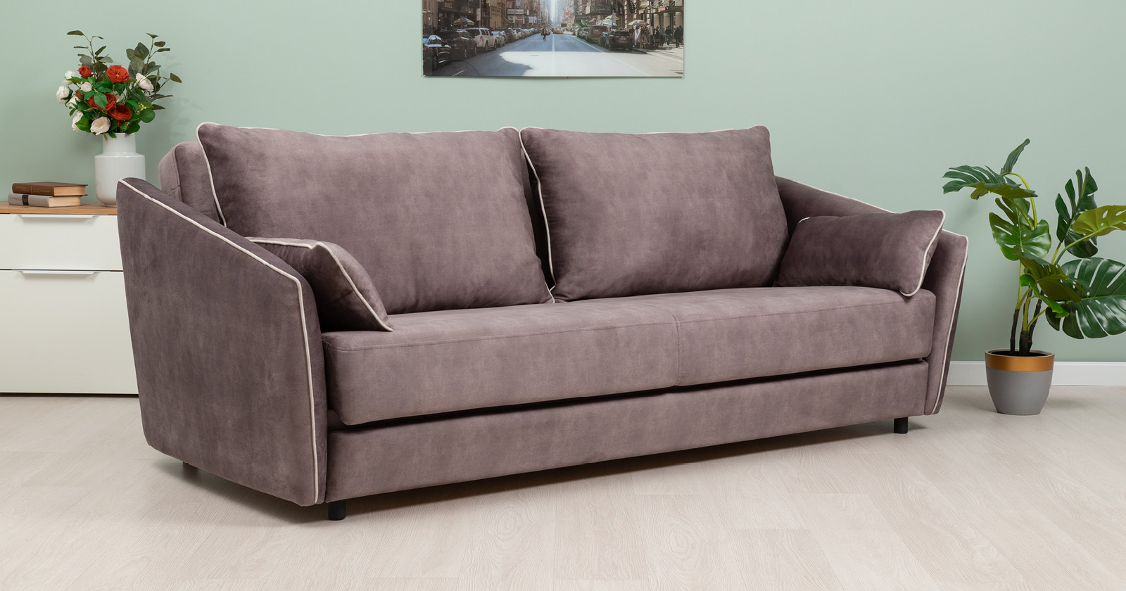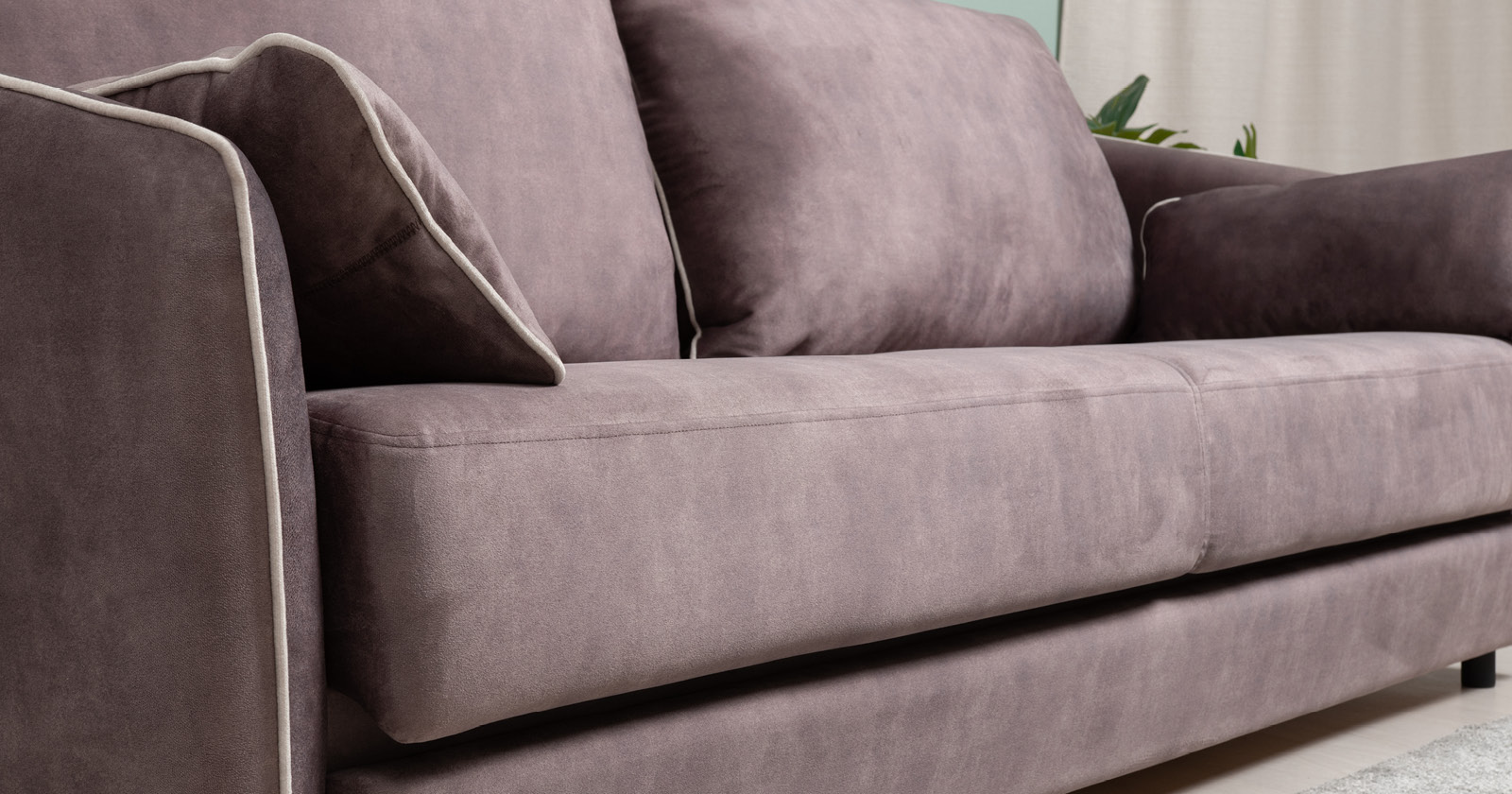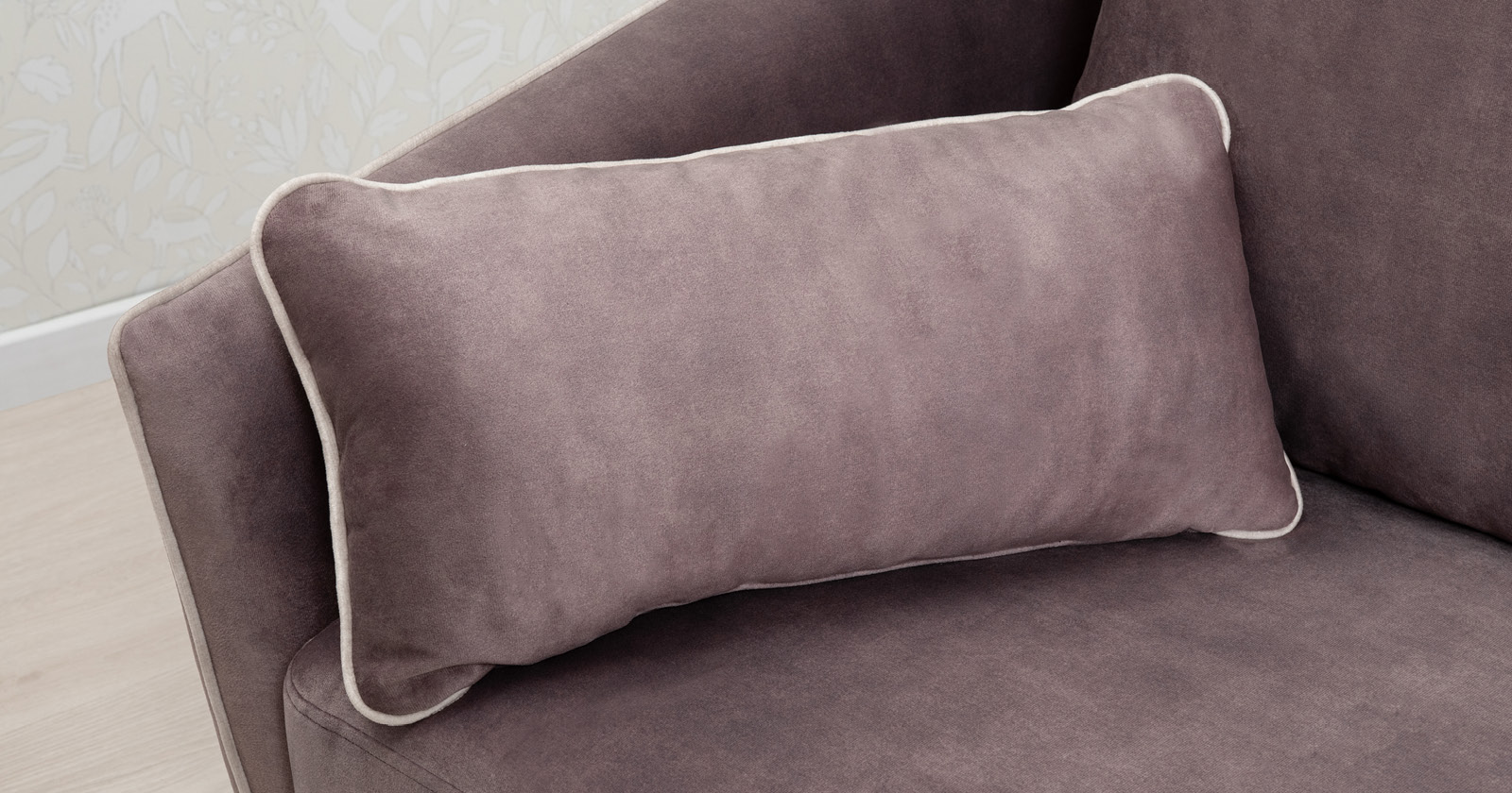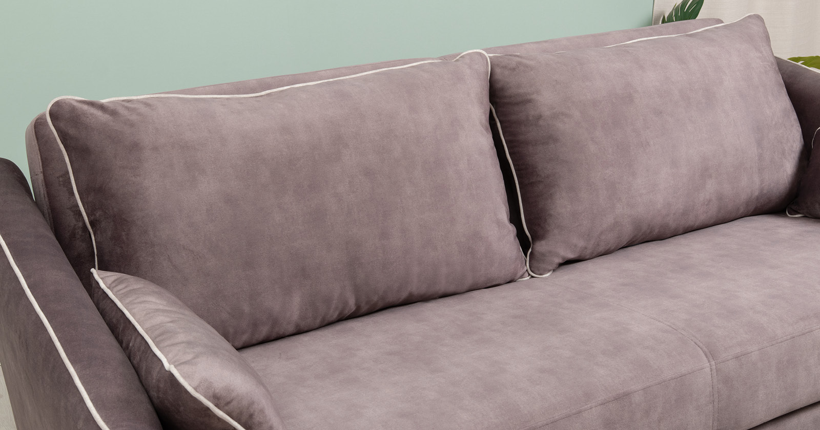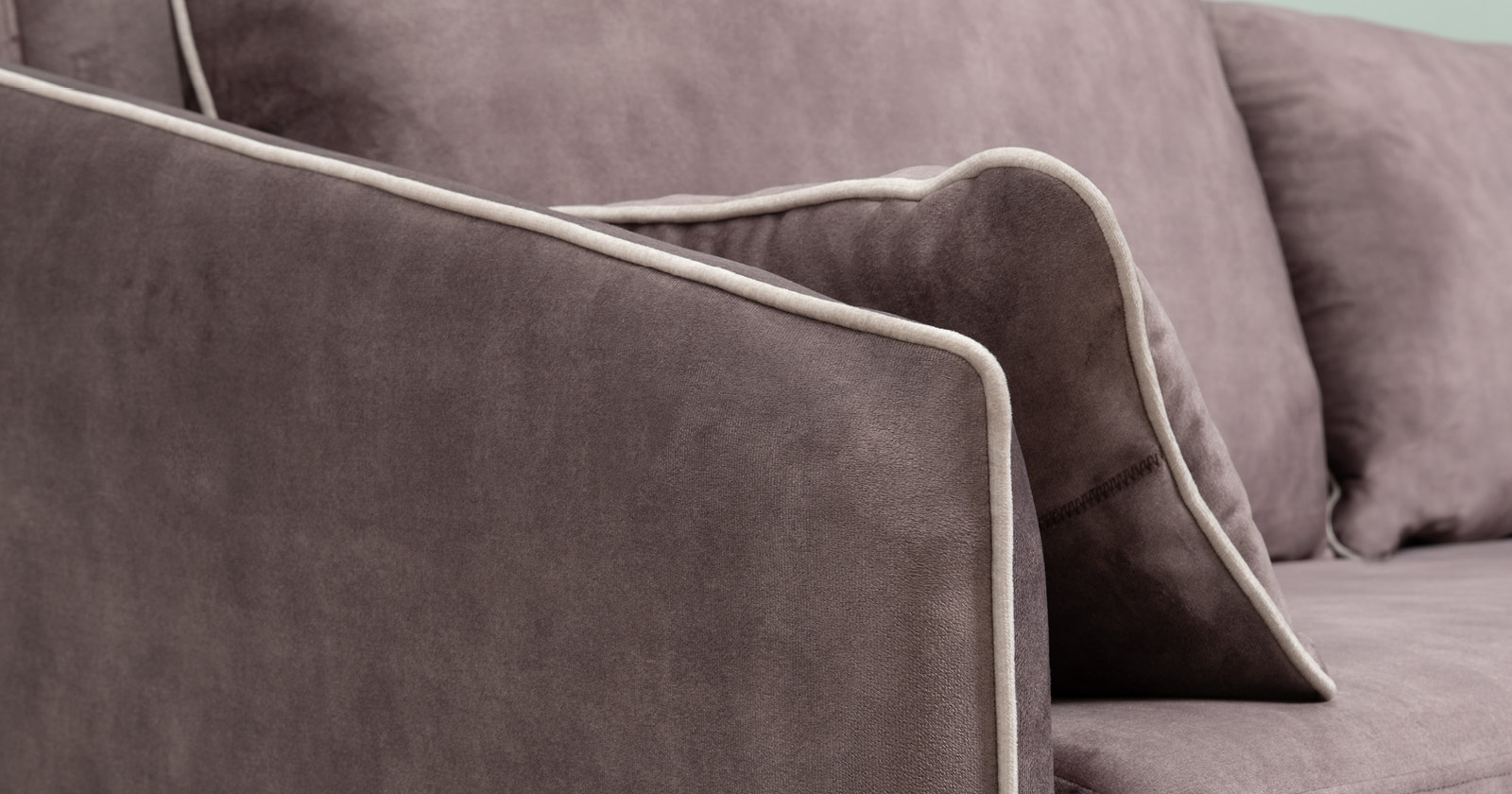 Подлокотники с выраженным контрастным кантом по внешнему контуру изделия. Декоративные подушки оформлены декоративной отстрочкой «зигзаг».