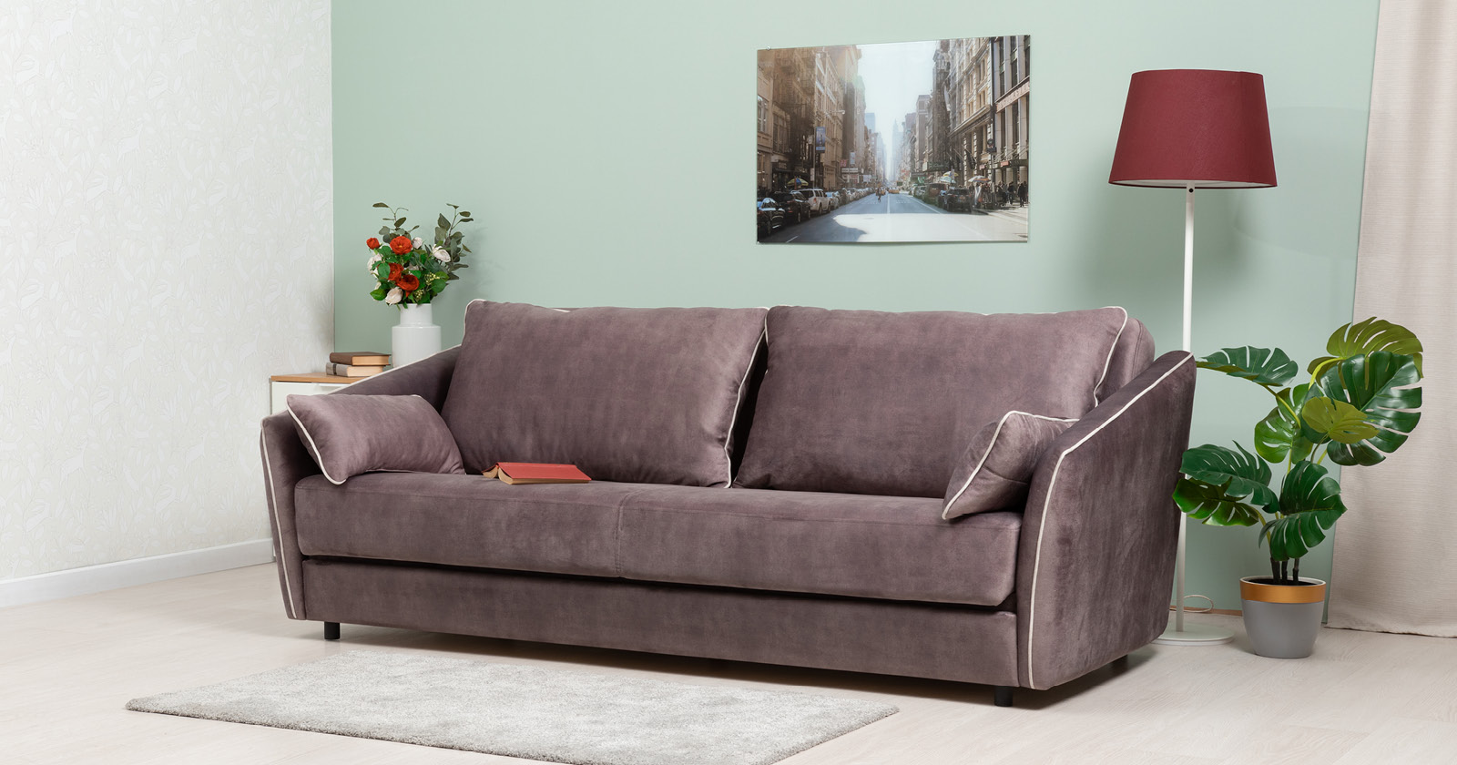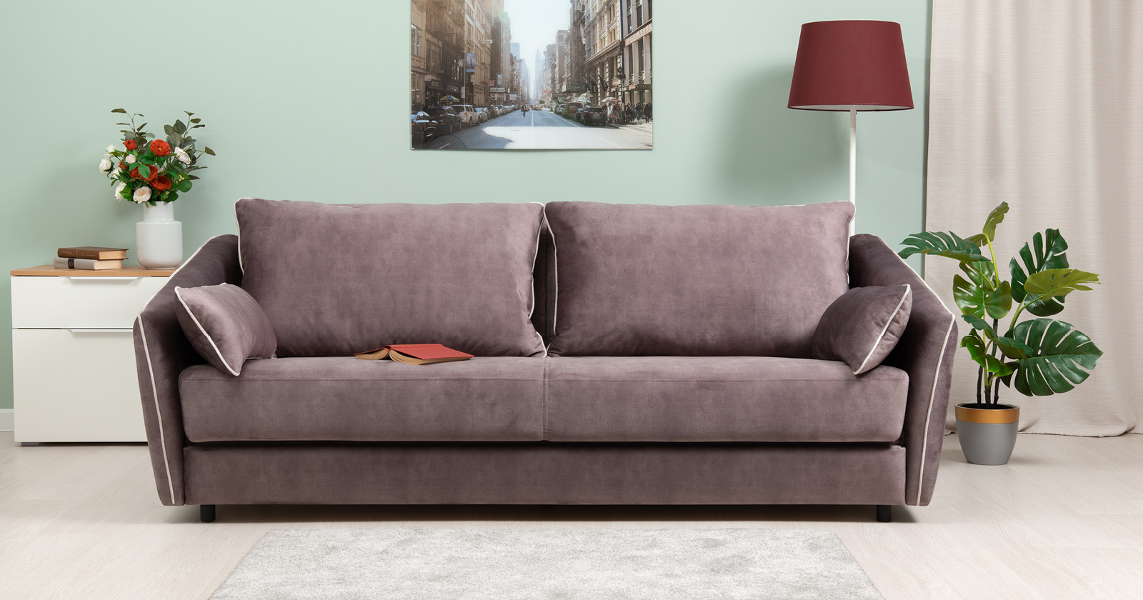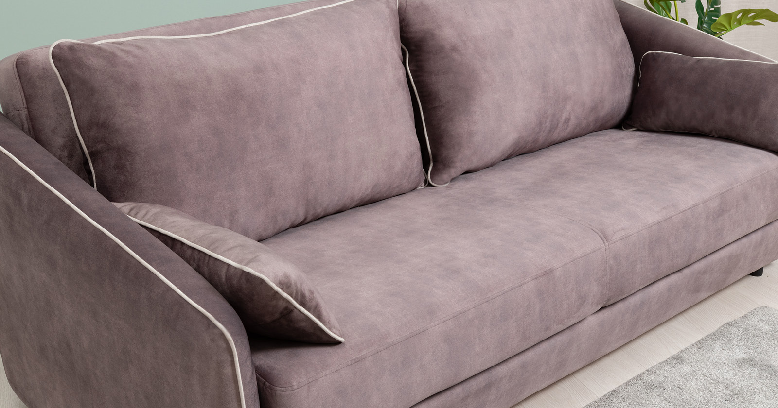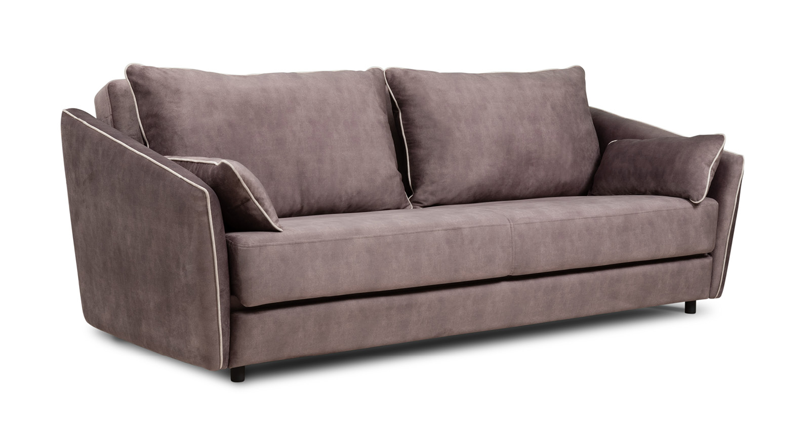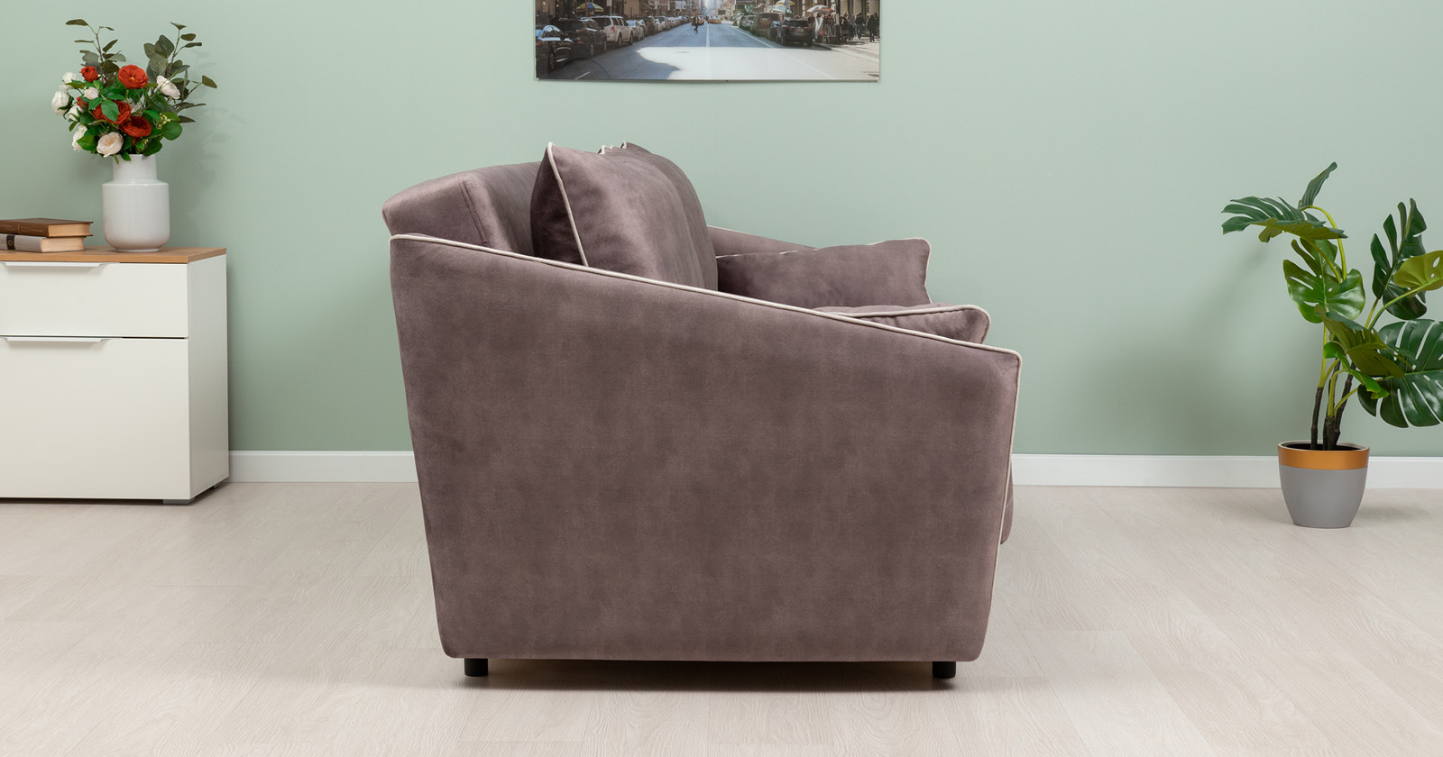 Подлокотники с выраженным контрастным кантом по внешнему контуру изделия. Декоративные подушки оформлены декоративной отстрочкой «зигзаг».