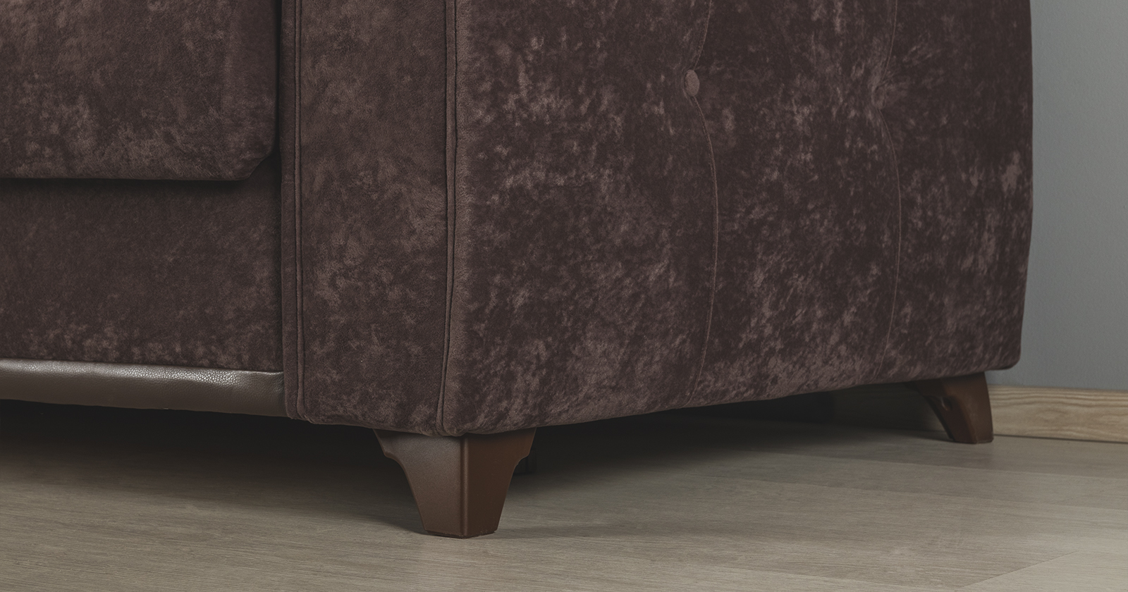 Выполнен в модном мягком велюре ROMANCE оригинальной фактуры. Ткань легко чистится, устойчива к зацепам, обладает повышенной износостойкостью. Благодаря особой технологии гладкого крашения Frozen Flower на поверхности ткани присутствует легкий краш–эффект, подчеркивающий невероятно мягкую фактуру ткани.