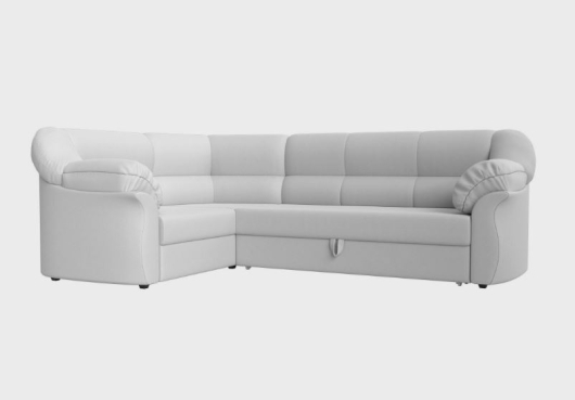 Классический угловой диван Карнелла на пластиковых ножках с удобными подлокотниками и мягкой спинкой. Трансформируется в комфортную двуспальную кровать, при этом занимает минимум свободного места.