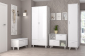 - пенал П-1 Эго опора ноги - Ш418 х Г510 х В2019 мм.Прихожая Эго (вариант 6) поможет обустроить достаточно функциональное и теплое помещение, которое с порога будет приветствовать вас. Крючки на вешалке и штанга в шкафу предназначены для размещения верхней одежды. Отделение, скрытое за откидной дверкой тумбы, позволяет разместить обувь. Мягкое сиденье пригодится для комфортного снятия обуви. За распашными дверьми находится широкая штанга для вешалок-плечиков с одеждой, а выдвижные ящики и полки в пенале пригодятся для бережного хранения сложенной одежды, различных аксессуаров и коробок с обувью.