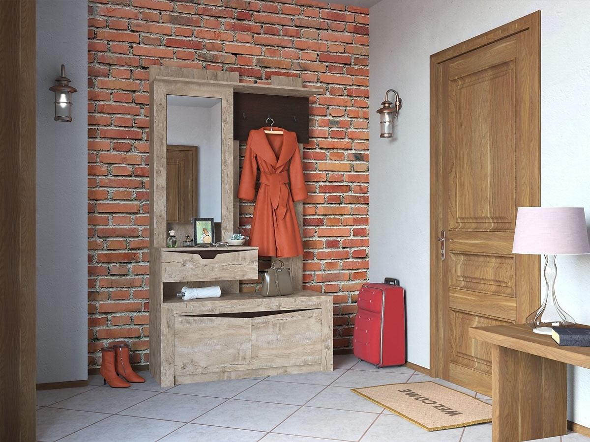 Прихожая Хилтон поможет обустроить достаточно функциональное и теплое помещение, которое с порога будет приветствовать вас. Три крючка на вешалке предназначены для размещения верхней одежды, а антресольная полка пригодится для головных уборов и других сезонных аксессуаров. За распашными дверцами тумбы находится вместительное отделение которое пригодится для хранения нескольких пар обуви и необходимых аксессуаров. Небольшое зеркало поможет в выборе аксессуаров и перед выходом из дома убедит вас в том, что выглядите вы неотразимо. Мебель Хилтон - выбор современных и активных молодых людей, предпочитающих удобство, комфорт и оригинальность.