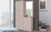 - тумба с зеркалом 450 Корвет №21 - Ш520 х Г450 х В2100 мм.Прихожая Корвет (вариант 1) поможет со вкусом обустроить уютное и достаточно приветливое помещение, которое с порога будет окутывать теплом. За двумя распашными дверьми шкафа находится широкая штанга для вешалок-плечиков с верхней одеждой. Антресольная и нижняя полки пригодятся для аккуратного размещения и хранения головных уборов, зонтов, различных сезонных аксессуаров и коробок с обувью. Зеркало поможет подобрать удачные аксессуары, а также перед выходом из дома убедит вас в том, что выглядите вы неотразимо. За распашной дверцей тумбы расположено вместительное пространство с полками, предназначенными для хранения различных аксессуаров или обуви всей семьи. Небольшой выдвижной ящик пригодится для размещения ключей, почты и других мелочей.