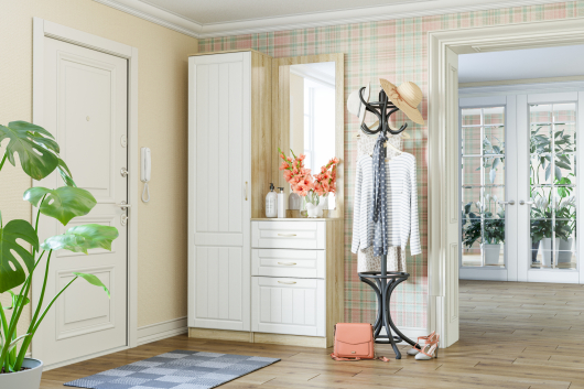 - зеркало Оливия НМ 040.49 - Ш602 х Г20 х В1254 мм.Прихожая Оливия (вариант 2) поможет обустроить стильное и уютное помещение. Штанга для вешалок-плечиков, скрытая внутри шкафа, предназначена для размещения верхней одежды. Антресольная полка пригодится для головных уборов и различных сезонных аксессуаров. За нижней дверцей тумбы скрыто вместительное отделение, созданное для размещения обуви, а два выдвижных ящика предназначены для различных аксессуаров, косметики и приспособлений. Зеркало пригодится во время подбора удачных аксессуаров, а также перед выходом из дома убедит вас в том, что выглядите вы неотразимо.