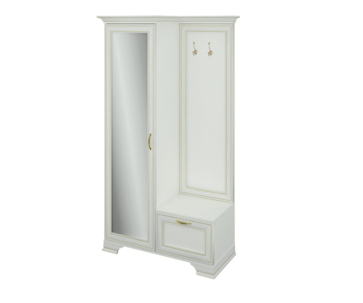 Вешалка комбинированная Каприз поможет обустроить достаточно функциональное и теплое помещение, которое с порога будет приветствовать вас. Два крючка на вешалке и штанга в шкафу предназначены для размещения верхней одежды, а антресольная полка за распашной дверью пригодится для головных уборов и других сезонных аксессуаров. За дверцей тумбы находится вместительное отделение которое пригодится для хранения нескольких пар обуви и необходимых аксессуаров. Мебель Каприз создана для приверженцев классического стиля и тех, кто хочет создать приятную обстановку в доме.