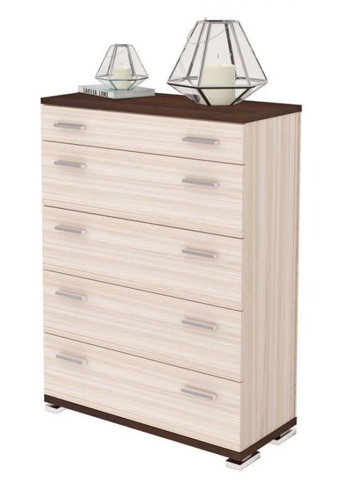 Комод с прямыми углами Домино КМ-2 приятно удивит удачным сочетанием компактности и необычайной вместительности. Модель оборудована пятью выдвижными ящиками, которые пригодятся для бережного и аккуратного хранения одежды, нижнего и постельного белья, косметики и разнообразных аксессуаров. Сверху на комоде вы можете расположить декоративные украшения, фотографии близких людей и какие-нибудь оригинальные предметы.