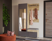 Прихожая Livorno 3 отличное решение для современной прихожей. Стильный цвет и продуманный функционал станет неизменным плюсом в пользу этой модели.Прихожая Livorno 3 идеально вписывается в пространство узкого коридора благодаря продуманной конфигурации модулей — шкаф и тумба расположены вплотную, не оставляя «мертвых зон». Зеркало на дверце шкафа визуально расширяет пространство, а нижняя вешалка удобна для повседневной одежды и обуви. Верхняя вешалка подходит для пальто и сумок — всё на виду, но не мешает проходу. Глубина 386 мм позволяет использовать мебель даже при ограниченном выезде из двери. Цветовая гамма — дуб бунратти и софт графит — сочетает светлую основу с современным акцентом, легко вписываясь в разные стили интерьера. Такой комплект подходит как для городской квартиры, так и для загородного дома с сезонным использованием.