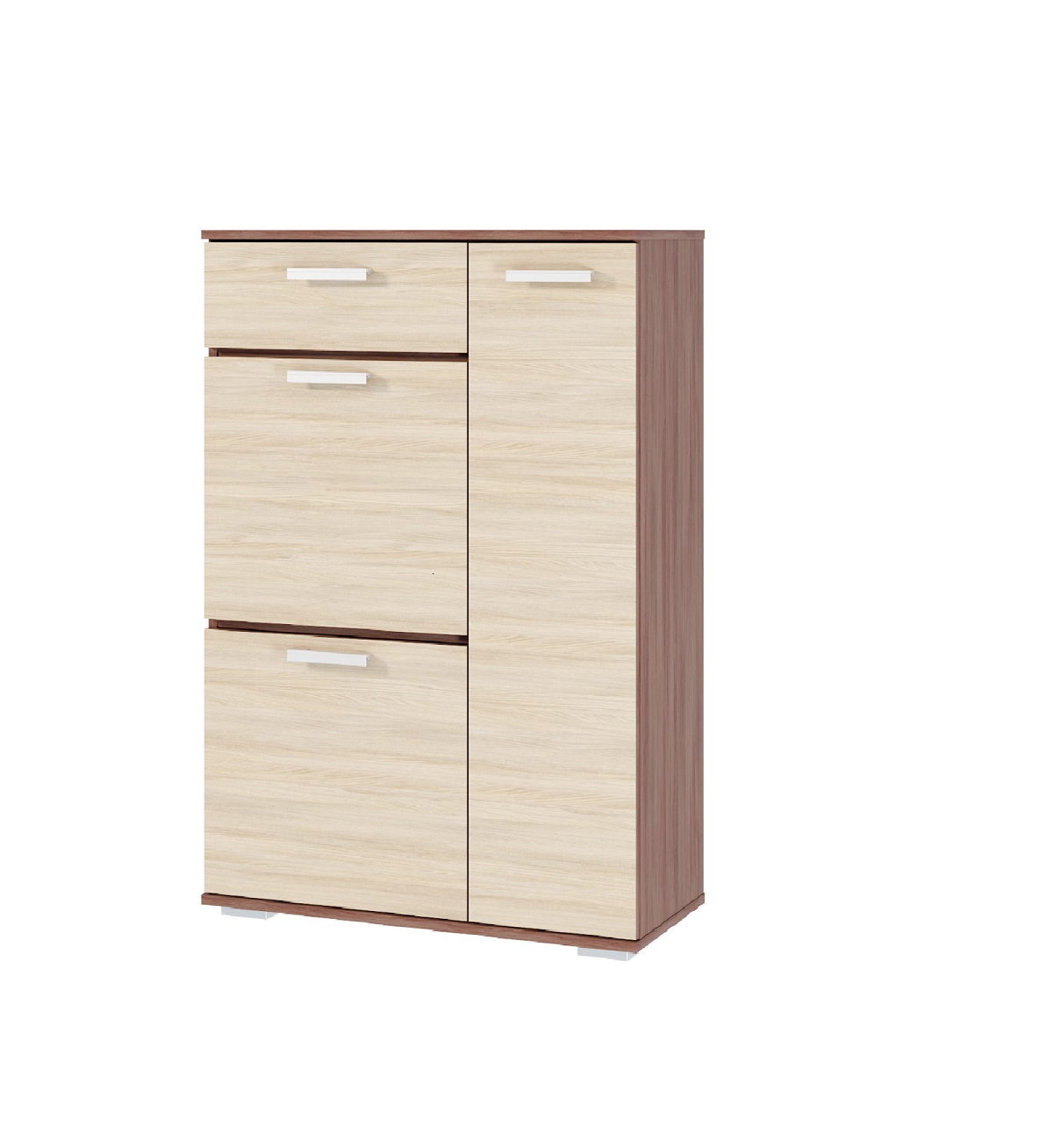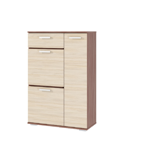 Тумба Ника - станет полезным элементом в прихожей.Она выполнена в актуальном сочетании темного и светлого древесного оттенка.Внутри расположено много отделений, по которым можно распределить все необходимые в прихожей вещи.Такая тумба отлично решает вопрос функциональности и вместительности.Модель оснащена тремя вместительными выдвижными ящиками и шкафчиком. За распашной дверцей скрыты две просторные полочки.Высокая тумба гармонично вписывается в узкие прихожие, не занимая много пространства при достаточной глубине — 354 мм позволяют удобно размещать обувь, зонт, перчатки или сумку без ощущения тесноты. За дверцей — две широкие полки: одна под верхнюю одежду, вторая — под аксессуары или обувь на каждый день. Ящики с плавным открыванием удобны для хранения мелочей: ключей, перчаток, документов. Комбинация светлых и тёмных оттенков фасада добавляет визуальной глубины, делая предмет заметным акцентом даже в небольшом коридоре. Подходит для квартир с низкой проходимостью — не требует частой уборки из-за отсутствия открытых полок. Идеальна как самостоятельная модель или часть системы хранения Ника.