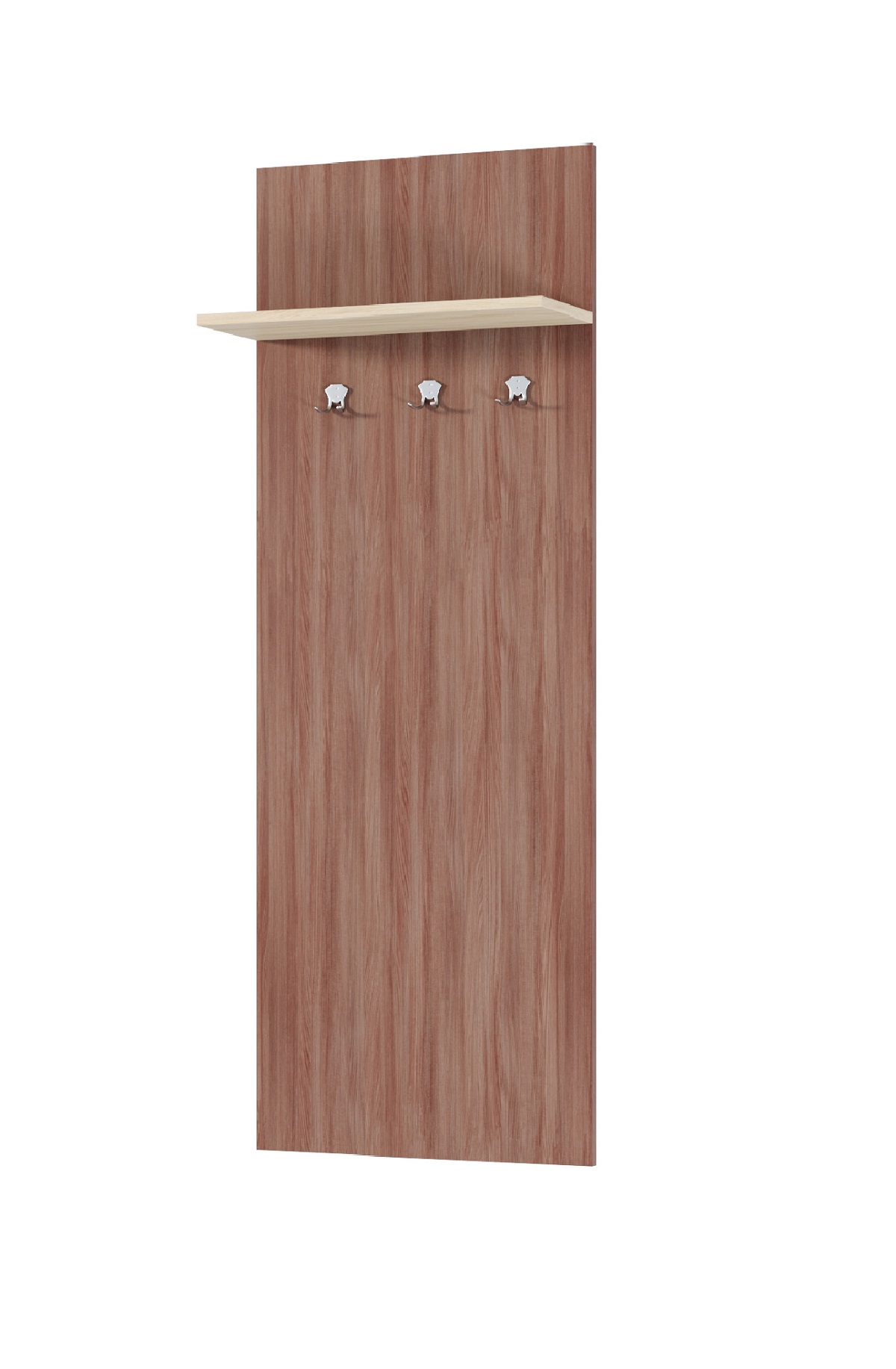Вешалка настенная Ника1 понравится истинным ценителям минимализма. Изделие оснащено тремя крючками для размещения верхней одежды, зонтов, шарфов, сумок и других аксессуаров. Верхняя полка создана для хранения головных уборов.Компактная вешалка идеально вписывается в узкие прихожие или коридоры, не занимая лишнего пространства благодаря настенному монтажу. Полка для головных уборов удобна для сезонных смен — шляпы, кепки и береты можно держать под рукой, не перегружая крючки. Три крючка рассчитаны на повседневную нагрузку: один — для пальто, второй — для зонта или сумки, третий — для шарфа или перчаток. За счёт отсутствия выступающих элементов конструкция безопасна в домах с детьми. ЛДСП с матовой поверхностью устойчив к царапинам от ремней и пуговиц. Установка занимает 15–20 минут с помощью прилагаемого крепежа. Подходит для квартир-студий, где важно чёткое зонирование и порядок.