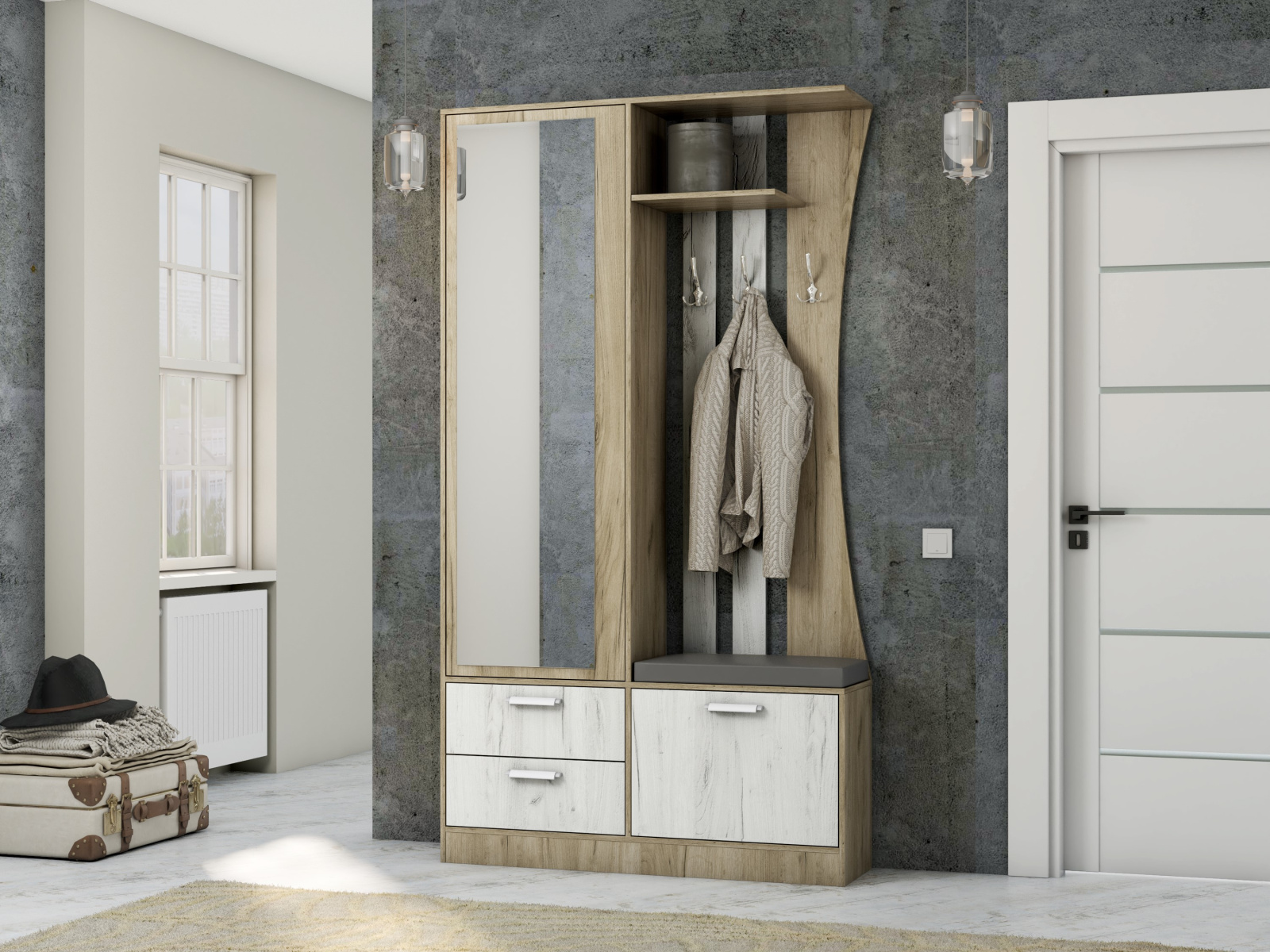 Прихожая Аэлита 5 позволяет эффективно решить проблему хранения вещей и создать уютное пространство для комфортного входа в дом. Зеркало визуально расширит пространство. -