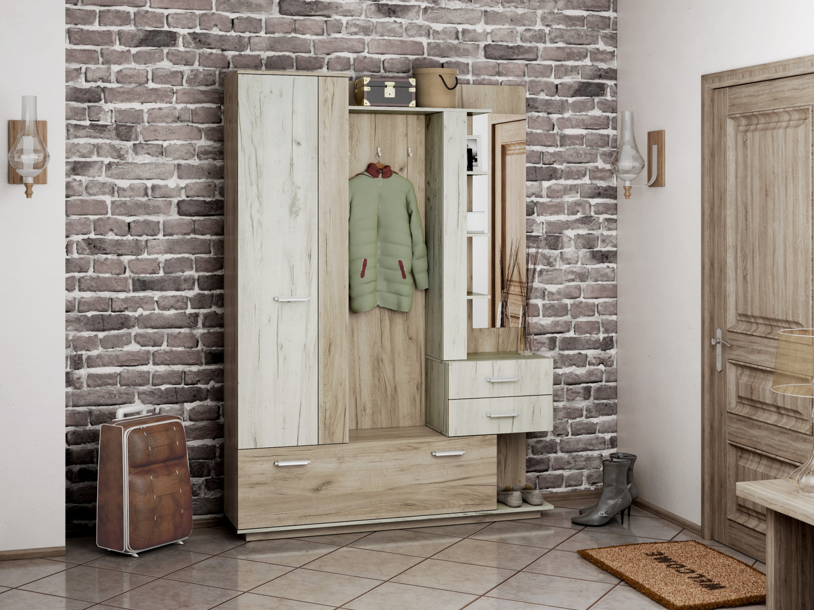 Прихожая Марио позволяет эффективно решить проблему хранения вещей и создать уютное пространство для комфортного входа в дом. Зеркало визуально расширит пространство. -