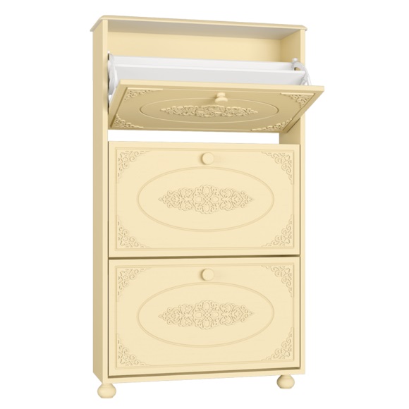 Роскошная тумба для обуви Ассоль Плюс АС-46 станет настоящим украшением вашего дома. Изделие поможет раз и навсегда забыть о проблеме разбросанной обуви. Тумба оснащена тремя откидными дверцами со специальными отсеками для аккуратного размещения обуви всей семьи. Сверху на тумбе вы сможете расположить ключи, бумажник, косметику и аксессуары для обуви. Объемный изысканный узор придает нотки элегантности и роскоши.
