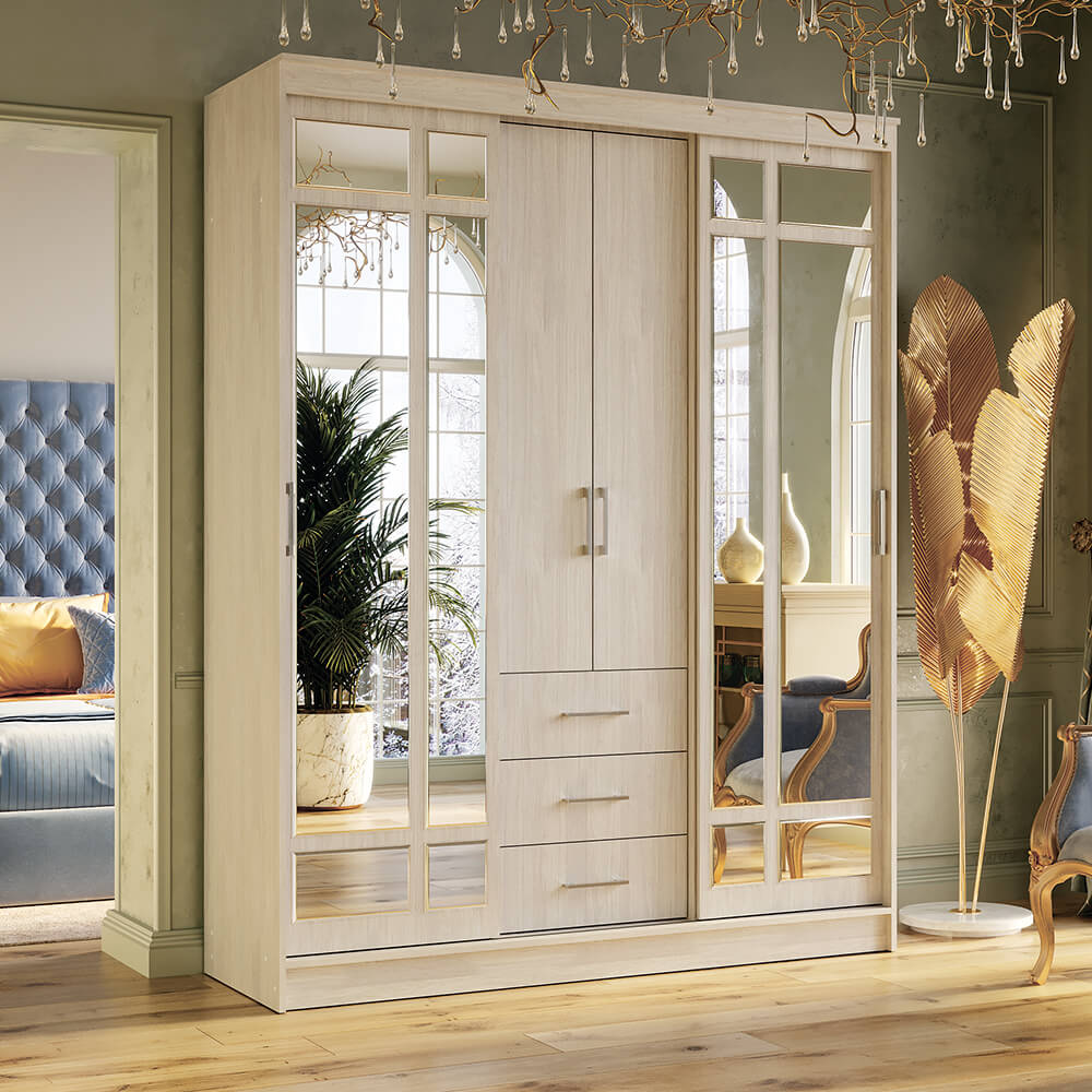 Шкаф-купе оснащён зеркалом с фацетом.Зеркальная фасада с фацетом не только визуально расширяет пространство, но и упрощает утренние сборы — проверьте причёску, не отвлекаясь от дела. Благодаря глубине 600 мм шкаф легко вместит сезонные вещи, не создавая ощущения тесноты. Внутри — продуманная система хранения: полки под обувь и сумки, ящики для мелочей, регулируемые вешалки для одежды. Каркас из тёмного ЛДСП (венге/лоредо) гармонично смотрится с белой фасадой, не теряя выразительности даже при слабом освещении. Подойдёт и для узкой прихожей, если нужен компактный, но вместительный вариант. Установка — без перепланировки: стандартная высота 2200 мм подходит под большинство потолков.