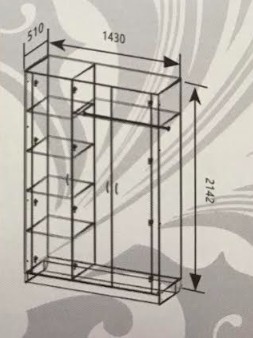 Размеры: Ш1430 х Г510 х В2142 мм