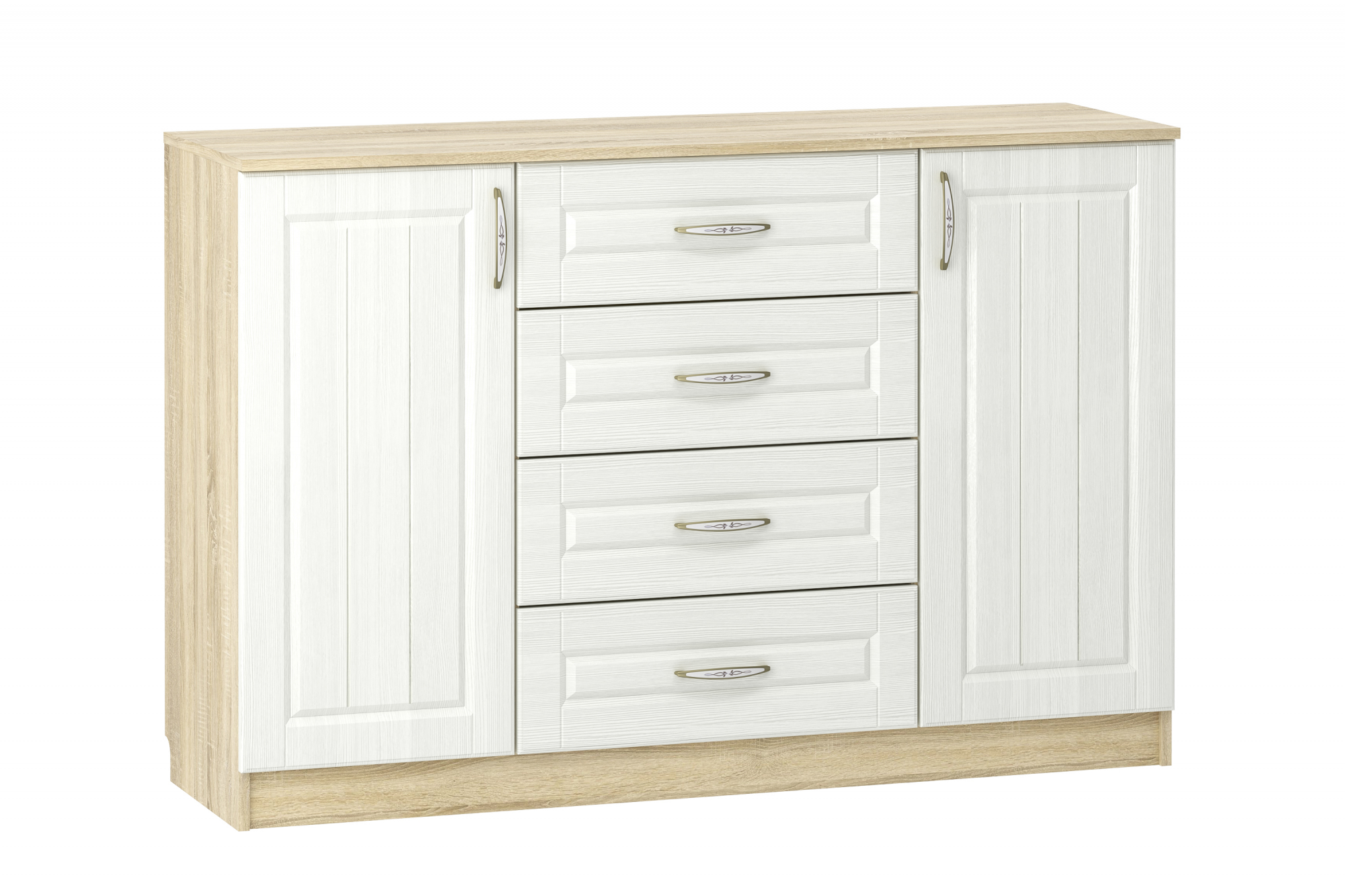 Тумба Оливия НМ 040.35 станет незаменимым элементом для обустройства уютной спальной комнаты. Изделие имеет четыре необычайно вместительных выдвижных ящика и два отделения с распашными дверьми, которые можно использовать для бережного хранения одежды, нижнего и постельного белья, косметики и разнообразных аксессуаров. Сверху на тумбе вы сможете разместить семейные фотографии, вазу с цветами и многое другое.