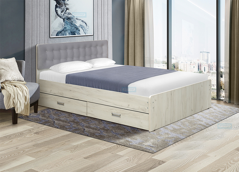 Кровать двойная №6 с мягкой спинкой и ящиками прекрасно дополнит вашу спальню. Мягкая спинка добавит комфорта этой модели. Выдвижные ящики делают кровать №6 очень функцональной. -