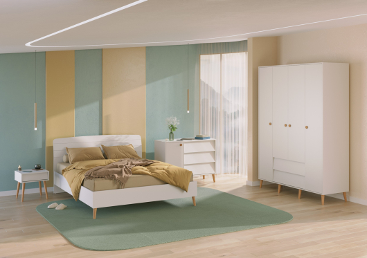 Спальня Афина 3 стильная и современная модель. Выполнена в тёплом цвете, что придаст интерьеру уют. Ножки выполнены из массива в натуральном цвете бук. Кровать оснащена основанием.