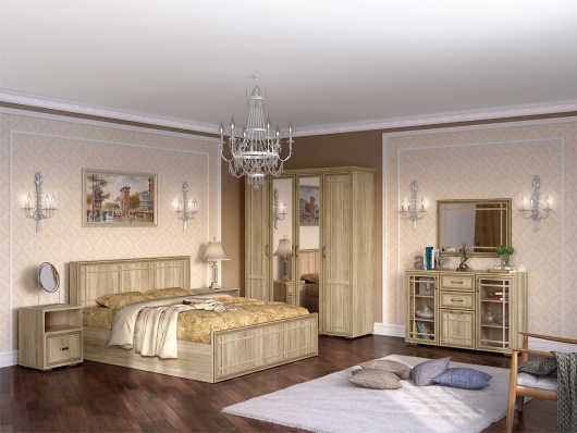 Спальня Бруно (вариант 1) поможет обустроить уютную комнату, в которой вы сможете расслабиться и ощутить домашнее тепло. Кровать предоставит необычайно удобное спальное место, где вы после трудных и насыщенных дней сможете расслабиться, отдохнуть и набраться сил. Высокое изголовье позволит комфортно расположиться перед сном и почитать интересную книгу или посмотреть сериал на планшете. Прикроватные тумбы помогут держать все важные и необходимые предметы около кровати. Вместительные выдвижные ящики пригодятся для хранения книги для чтения перед сном, маски для беззаботного сна и крема для увлажнения рук. Сверху на тумбах вы сможете разместить небольшой светильник, семейную фотографию и часы для своевременного подъема. За распашными дверьми 2х створчатый шкафа находится широкая штанга для вешалок-плечиков с безупречно выглаженной одеждой. Для размещения другой одежды, постельного и нижнего белья, различных аксессуаров и коробок с обувью предназначены полки, скрытые в пеналах.
