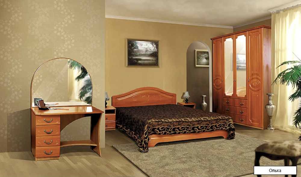 Практичная большая спальня сделана из ЛДСП. Фасады сделаны из МДФ с красивым рисунком. Такая спальня прекрасно подойдет для любого интерьера и подарит чувства комфорта и уюта. Спальня представлена в 3 различных цветах, поэтому вы сможете подобрать для себя нужный вариант. -