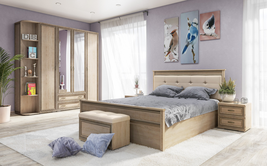Спальня Ливорно (вариант 3) поможет обустроить уютную комнату, где вы сможете отдохнуть не только телом, но и душой. Кровать предоставит комфортное спальное место где вы сможете отдохнуть, расслабиться и набраться сил. Высокое изголовье позволит расположиться перед сном и почитать интересную книгу, посмотреть фильм или сериал на планшете. Тумба прикроватная поможет разместить около кровати все необходимые предметы. В двух выдвижных ящиках вы сможете хранить книгу для чтения перед сном, маску для сна и крем для увлажнения рук. Сверху на тумбе можно разместить семейную фотографию, небольшой светильник и часы для своевременных подъемов. За распашными дверьми 2-х дверного шкафа находится широкая штанга для вешалок-плечиков с верхней одеждой, деловыми костюмами, красивыми платьями и другой безупречно выглаженной одеждой. Полки, скрытые в пенале и торцевом шкафу, пригодятся для хранения сложенной одежды, постельного и нижнего белья, различных аксессуаров. Открытые полочки пригодятся для размещения семейных фотографий, интересных книг, памятных сувениров и статуэток, небольших вазонов и оригинальных предметов декора.