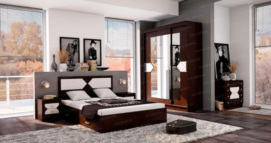 Невероятно стильная спальня Николь сделает Вашу комнату по-настоящему комфортной, красивой, наполнит ее атмосферой тепла и уюта, которая способствует полноценному отдыху и расслаблению. Уютная большая кровать с высоким изголовьем поможет отдохнуть, хорошо выспаться и проснуться утром бодрым и полным сил. Две прикроватные тумбы с выдвижными ящиками привлекают внимание и смотрятся гармонично с кроватью, а компактный и необычайно вместительный комод пригодится для хранения одежды, белья и разнообразных аксессуаров. Внутри 3-х створчатого шкафа находятся две штанги для вешалок-плечиков с красивыми платьями, деловыми костюмами и роскошной верхней одеждой. Множество полок созданы для бережного и аккуратного хранения одежды, нижнего белья, коробок с обувью и всевозможными аксессуарами. -