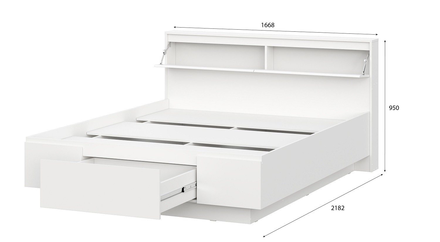 Ширина, мм 1668 Глубина, мм 2182 Высота, мм 950 ?Спальное местоШирина х Длина в мм1600х2000 ?МатериалМатериал изготовленияЛДСП Производитель Вариантов исполнения 1 -