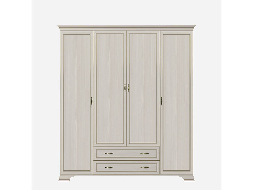 Шкаф 4-х дверный Сиена СП.0116.404 станет прекрасным дополнением уютной спальни, в которой вы сможете отдыхать не только телом, но и душой. За двумя центральными и левой боковой распашными дверьми находятся штанги для вешалок-плечиков с деловыми костюмами, красивыми платьями, выглаженными брюками и юбками, строгими рубашками и элегантными блузами. Пять полок за правой дверью и два вместительных выдвижных ящика пригодятся для размещения белья и разнообразных аксессуаров. Мебель Сиена производится из высококачественных материалов и комплектуется лицевой фурнитурой премиум-класса в цвете «старая бронза».